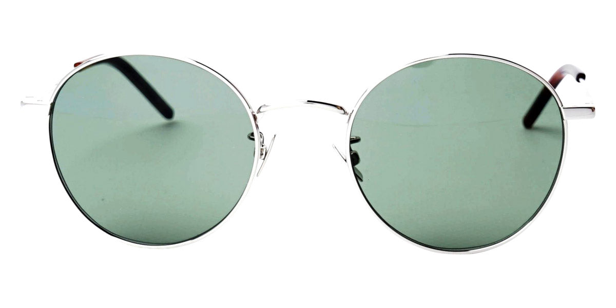SL 250 Sunglasses by Saint Laurent. Frame Material: Metal, Frame Shape: Round, Frame Type: Full Rim, Color: Black / Black, Silver / Green, Size: 52-21-140. The famous French brand Saint Laurent creates glasses for women and men and deservedly receives recognition after each release and presentation at the fashion shows. The manufacturer considers the collection of sunglasses and eyeglasses as part of the company concept, they are perfectly combined with clothes, shoes, and other products released under the name of Saint Laurent. The frames are made of premium quality plastic or metal, and thanks to this solution, each model of the brand is designed for many years of use. Daring decisions and ideas are implemented in these accessories which have gained popularity among stylish people around the world. Yves Saint Laurent turned high fashion upside down, bringing into it feminine sensuality and masculine seductiveness.