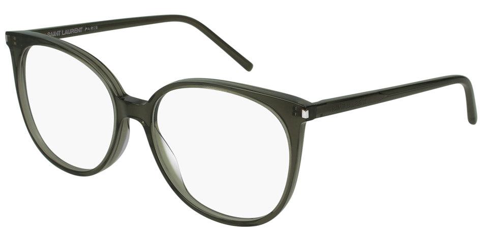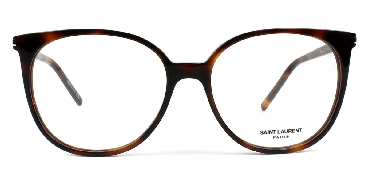 SL 39 Eyeglasses by Saint Laurent. Frame Material: Acetate, Frame Shape: Round, Frame Type: Full Rim, Color: Black, Green, Havana, Size: 54-16-140. The famous French brand Saint Laurent creates glasses for women and men and deservedly receives recognition after each release and presentation at the fashion shows. The manufacturer considers the collection of sunglasses and eyeglasses as part of the company concept, they are perfectly combined with clothes, shoes, and other products released under the name of Saint Laurent. The frames are made of premium quality plastic or metal, and thanks to this solution, each model of the brand is designed for many years of use. Daring decisions and ideas are implemented in these accessories which have gained popularity among stylish people around the world. Yves Saint Laurent turned high fashion upside down, bringing into it feminine sensuality and masculine seductiveness.