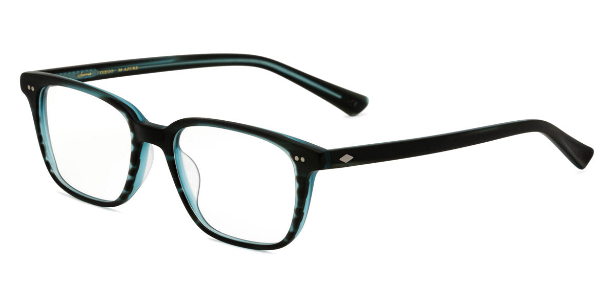 Diego Eyeglasses by Sama. Color: Black, Matte Azure, Jungle, Size: 53-18-145. Looking for eyewear that really stands out? Consider these stunning glasses from Sama. A perfect blend of style and functionality, they are a must-have for anyone who needs quality eyewear or simply wants to up their fashion game. With premium materials and precision engineering, these glasses offer unparalleled comfort and durability, ensuring they will last for years to come. In addition, the frame features exquisite details that give it an elegant and sophisticated feel. Whether you're heading to the office or out for a night on the town, these glasses are sure to make a statement.