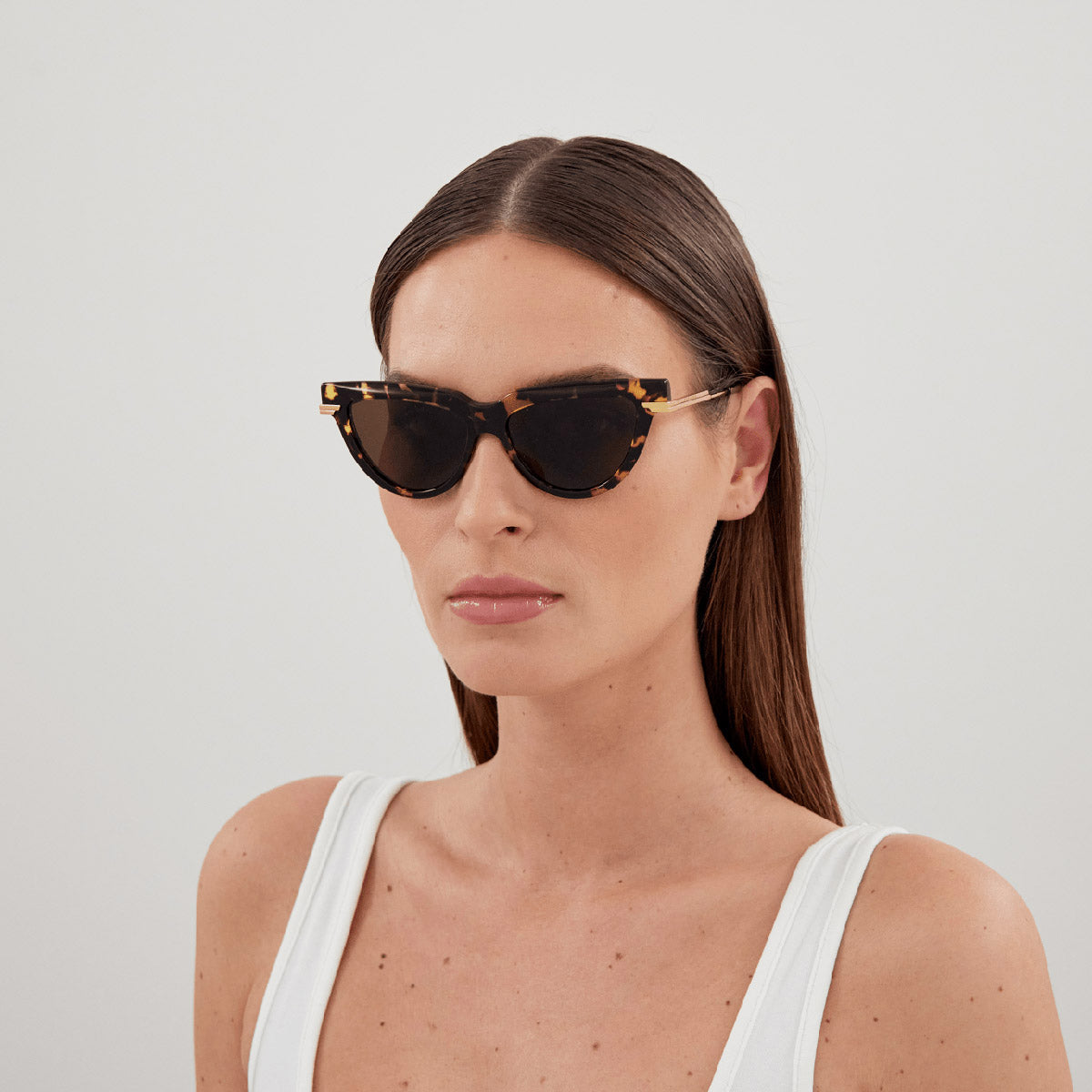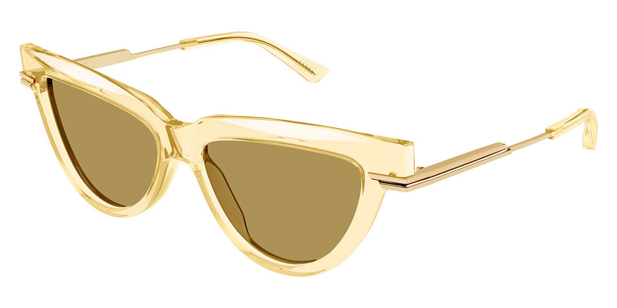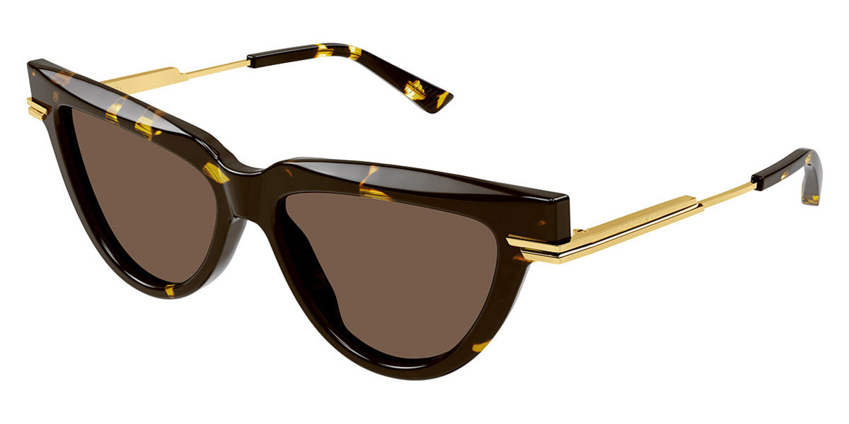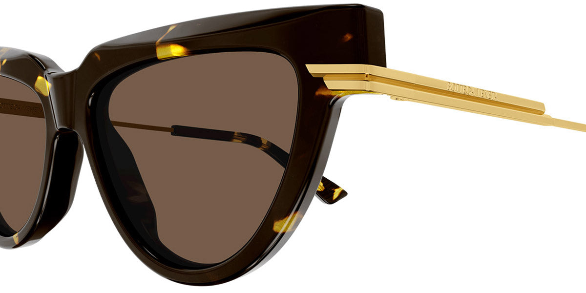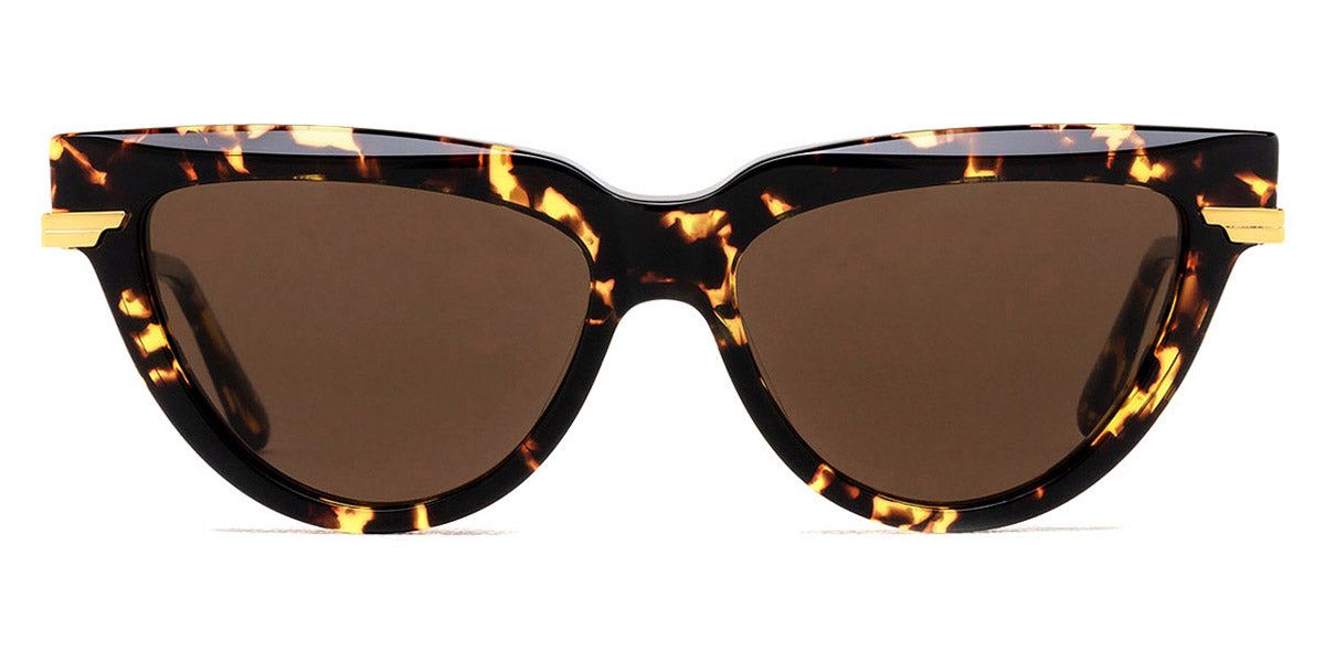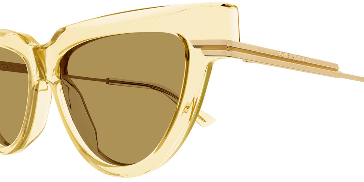 BV1265S Sunglasses by Bottega Veneta. Material: Acetate, Shape: Cat-Eye, Color: Black / Grey, Havana / Brown, Yellow / Brown, Size: 54-15-140. Designed with the discerning wearer in mind, these sunglasses offer a seamless blend of style and utility. Perfect for those sunny days where protection meets fashion, they enhance any outfit effortlessly. Each pair reflects the brand's dedication to artistic craftsmanship, providing wearers with a piece that is as much a work of art as it is a practical accessory. With their refined look, the BV1265S sunglasses are ideal for both urban environments and vacation settings, adding a touch of luxury to every moment.