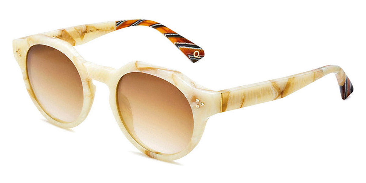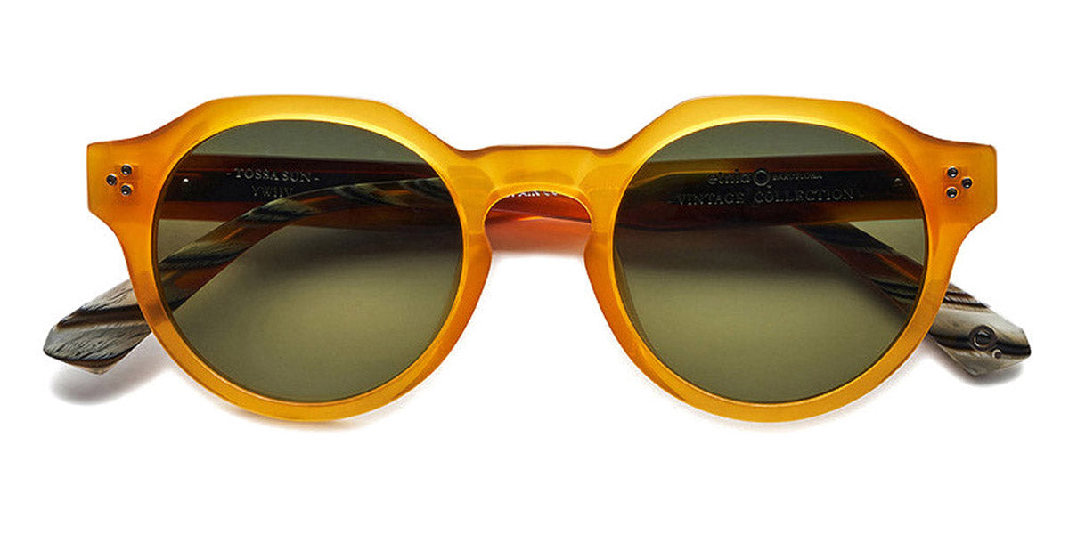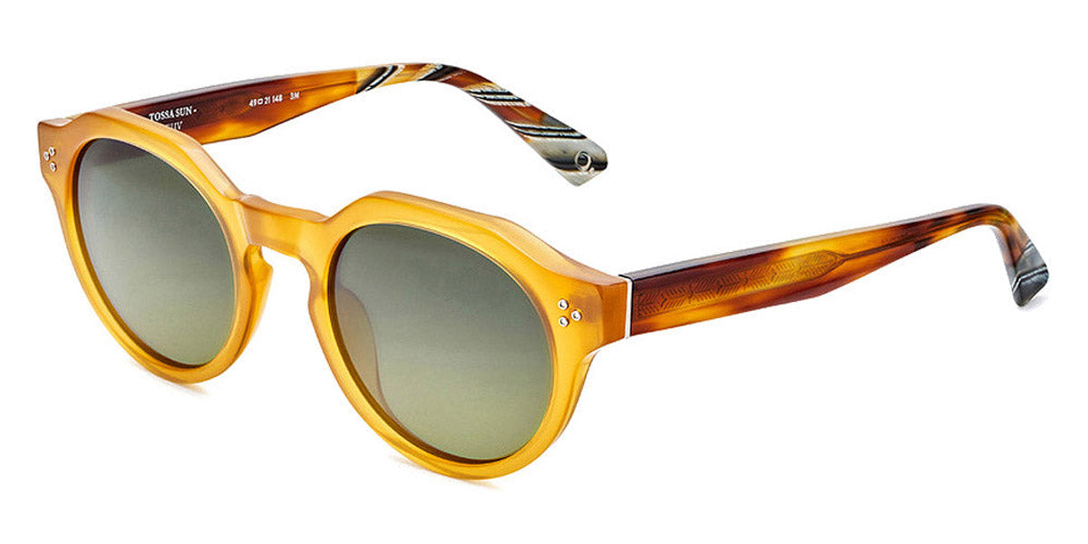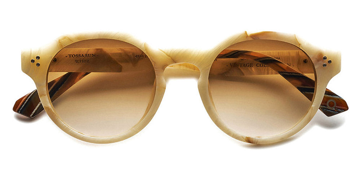 TOSSA SUN Sunglasses by Etnia Barcelona. Color: WHBR White/Brown, BK Black, YWHV Yellow/Havana, BRHV Brown/Havana, Size: 49-21-148. Playful yet refined, the TOSSA SUN brings a retro vibe with its pantos shape, where whimsical temple palettes dance against solid frame colors. The unexpected color contrasts transform these shades into a celebration of individuality, with every hue telling its own story. Made from lightweight and sturdy materials, they combine nostalgia with modern artistry and premium UV protection, setting the stage for your unique style to shine through, wherever you wander.