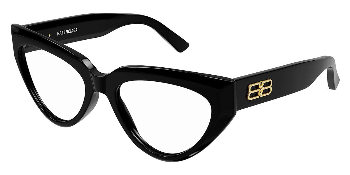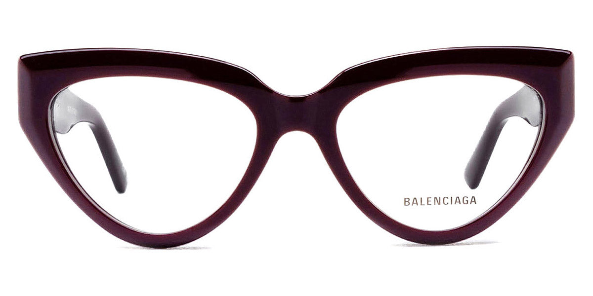 BB0276O Eyeglasses by Balenciaga. Shape: Cat-Eye, Material: Acetate, Color: Blue, Size: 53-18-140. The Balenciaga Eyewear collections consist of sunglasses and eyeglasses frames that combine a simple new style with the fashion house's desire to be inspired by technological innovation in its shapes and silhouettes. They embody revolutionary trends and fashionable realism. All models of glasses are marked with the brand's corporate logo, interpreted in their own way in different styles. The black double monogram "B" is set on transparent nose pads, creating a floating and weightless effect. The logo of the brand's sunglasses is applied to the mirror coating, which in different variations is always presented on the left temple. Extraordinary designs and unconventional materials mixed with more classic ones make Balenciaga eyewear unique and easily recognizable.