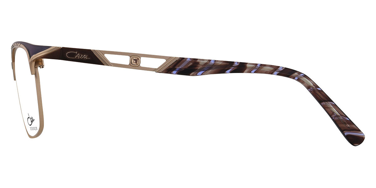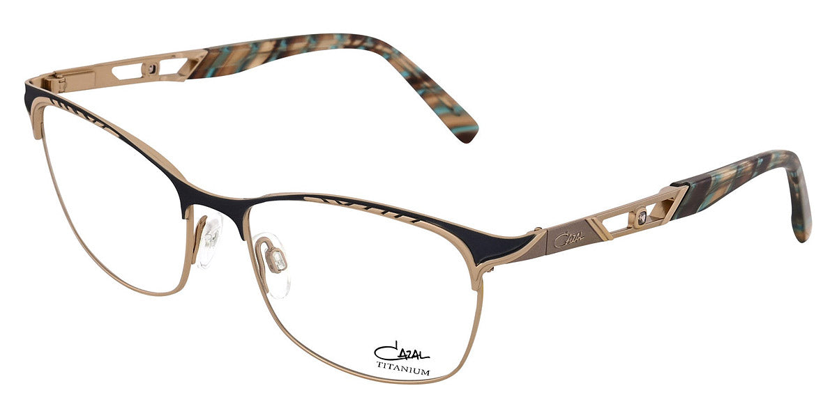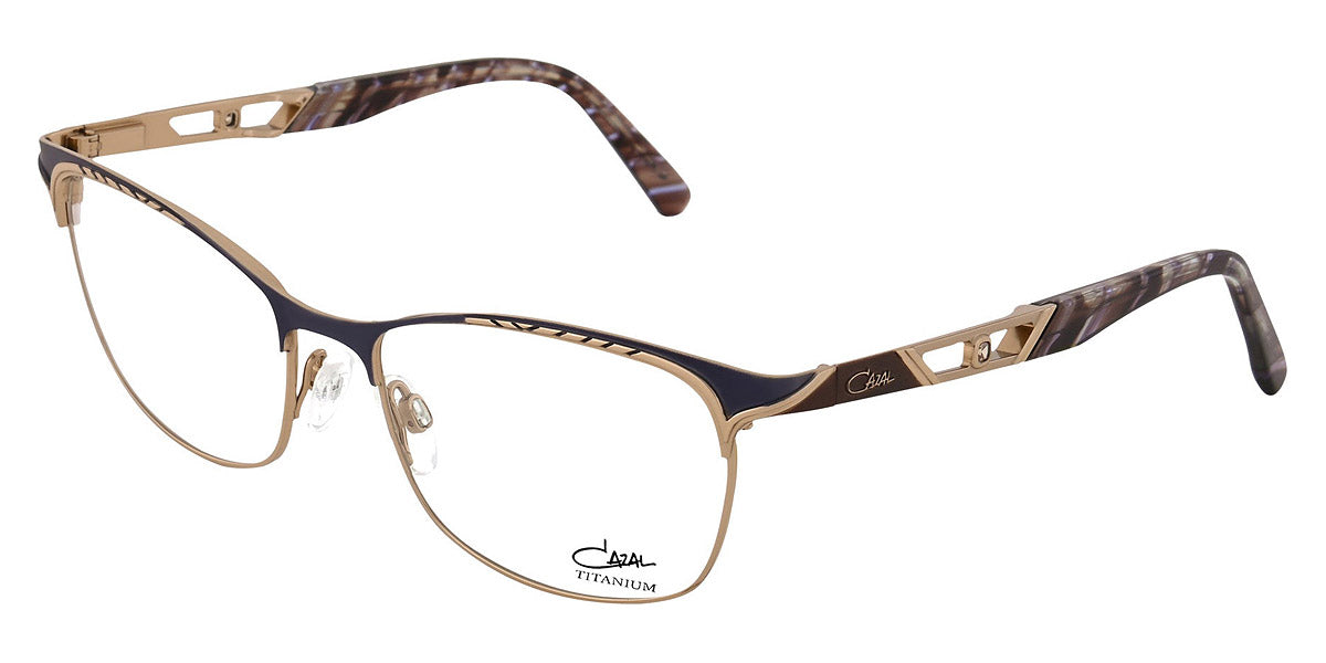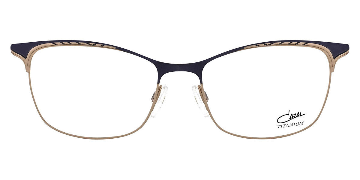 1287 Eyeglasses by Cazal. Color: 001 Navy Blue-Gold, 002 Aubergine-Gold, 003 Bordeaux-Rosegold, 004 Green-Gold, Size: 54-17-135. If you are someone who is looking to make a statement with their eyewear style, these opulent Cazal glasses are perfect for you! These iconic eyewear pieces offer an innovative design with an exuberant flair of creative energy and personality, allowing wearers to express themselves in any setting. With clean lines and sharp angles, refined details and harmonious color compositions, these frames provide maximum protection while still radiating a feeling of modern adventure and freedom — get ready to take on life with newfound confidence!