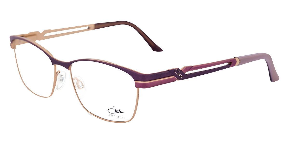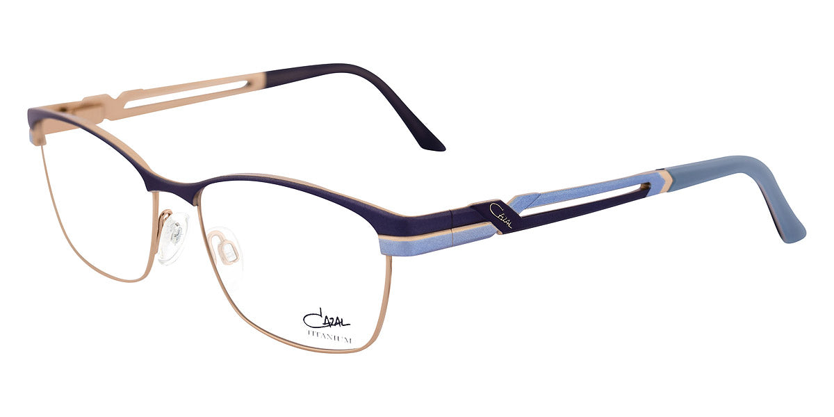 4303 Eyeglasses by Cazal. Color: 001 Aubergine-Gold, 002 Denim-Gold, 003 Brown-Rosegold, 004 Khaki-Gold, Size: 54-16-135. If you are someone who is looking to make a statement with their eyewear style, these opulent Cazal glasses are perfect for you! These iconic eyewear pieces offer an innovative design with an exuberant flair of creative energy and personality, allowing wearers to express themselves in any setting. With clean lines and sharp angles, refined details and harmonious color compositions, these frames provide maximum protection while still radiating a feeling of modern adventure and freedom — get ready to take on life with newfound confidence!