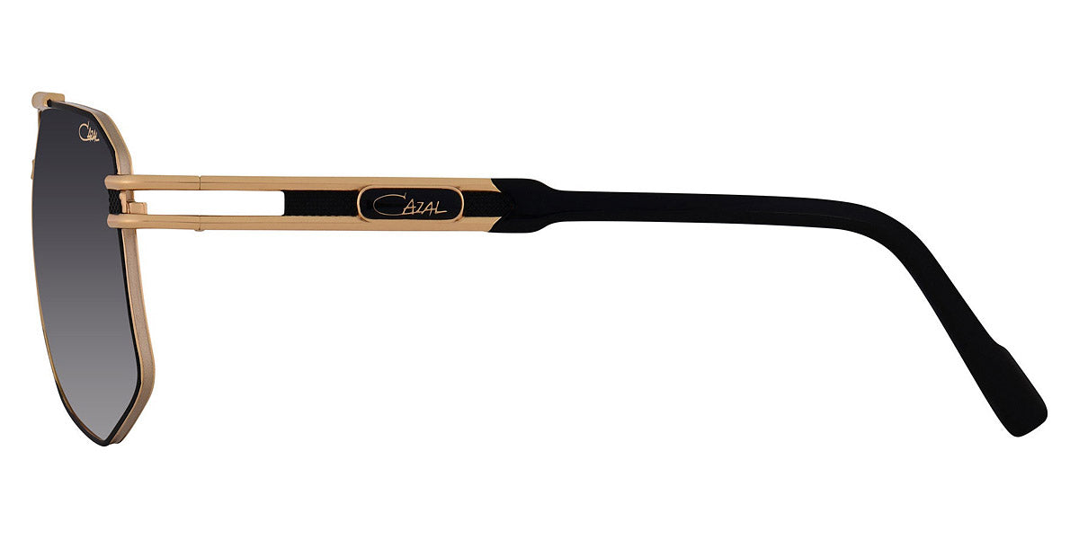 9110 Sunglasses by Cazal. Color: 001 Black-Gold, 002 Black-Silver Mat, 003 Bicolour, Size: 62-11-140. If you are someone who is looking to make a statement with their eyewear style, these opulent Cazal glasses are perfect for you! These iconic eyewear pieces offer an innovative design with an exuberant flair of creative energy and personality, allowing wearers to express themselves in any setting. With clean lines and sharp angles, refined details and harmonious color compositions, these frames provide maximum protection while still radiating a feeling of modern adventure and freedom — get ready to take on life with newfound confidence!