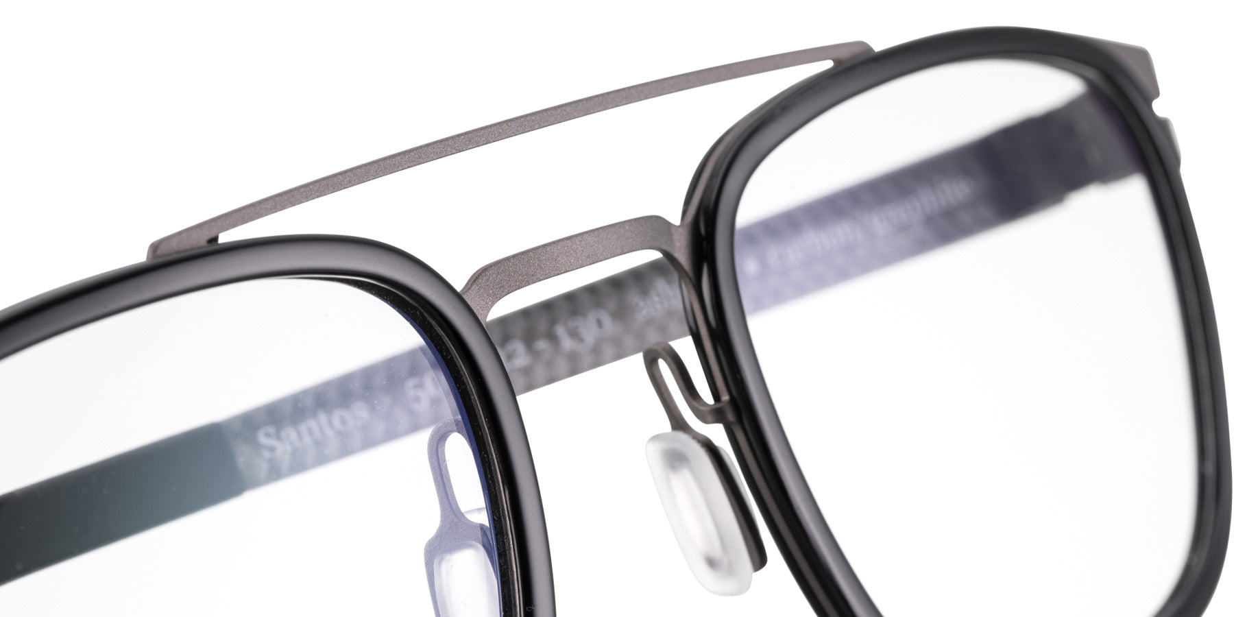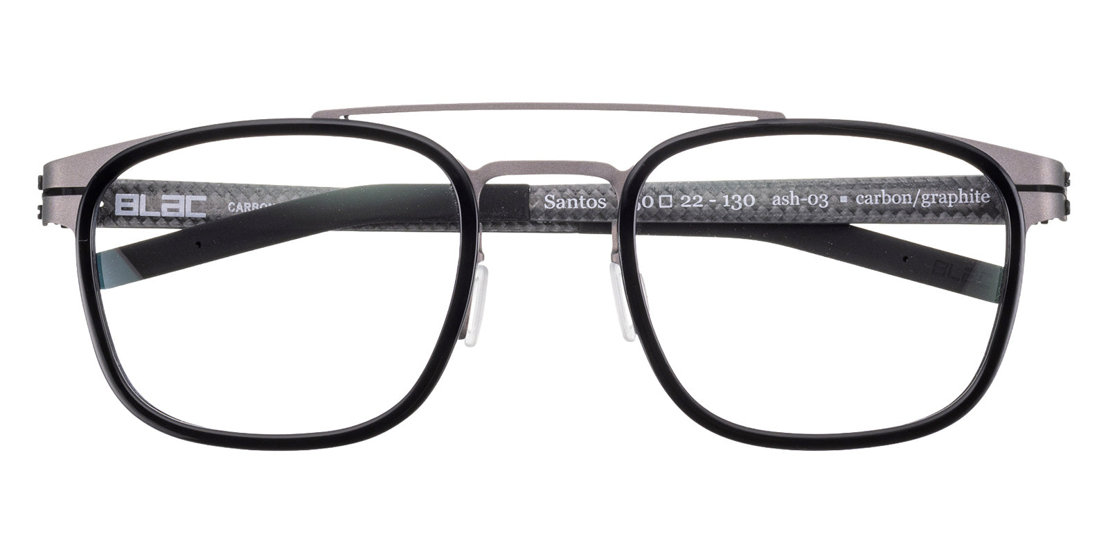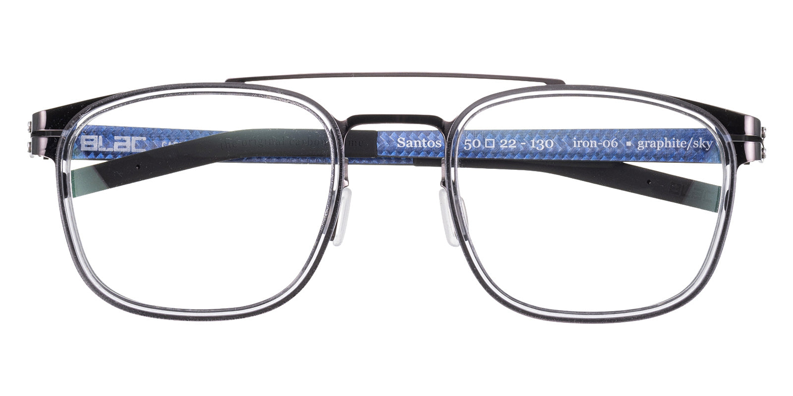 SANTOS Eyeglasses by BLAC. Color: JET-01-CA, IRON-06-GP, ASH-03-CA, ROYAL-01-DE, Size: 50-22-130, Material: Stainless Steel / Carbon