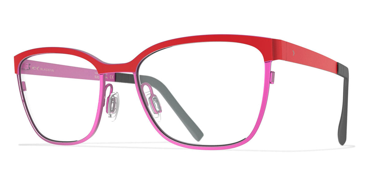 ELLIS BEACH Eyeglasses by Blackfin. Color: Brown/Pink, Red/Magenta, Ultramarine Green / Mint Green, Blue / Lilac, Blue / Red, Size: 53-17-145. Sleek sophistication defines the Blackfin ELLIS BEACH, with its pronounced frame top taking center stage in a frame that’s all about modern edge. Made from a single titanium sheet and designed for a prefect fit that you can adjust on the spot, these eyeglasses are great for everyday wear. The design is sharp and clean, with just enough flair to keep things interesting. Whether at the beach or in the city, the ELLIS BEACH frames are your ticket to effortless style.
