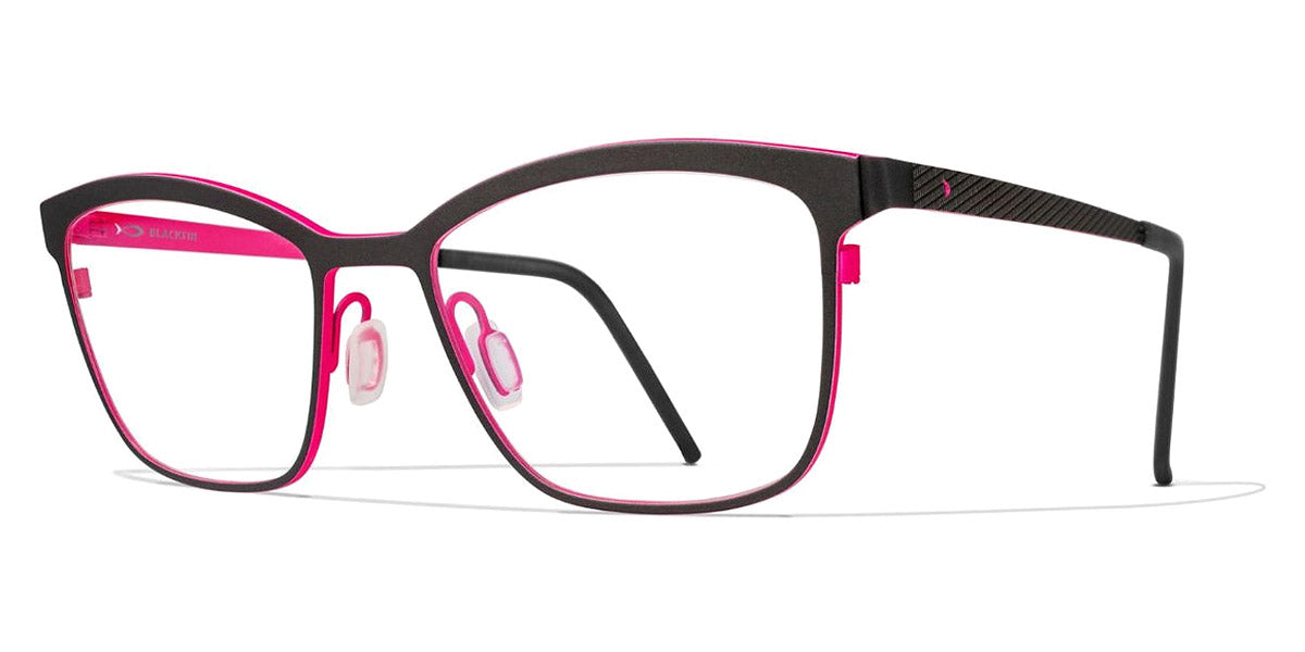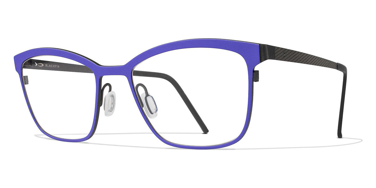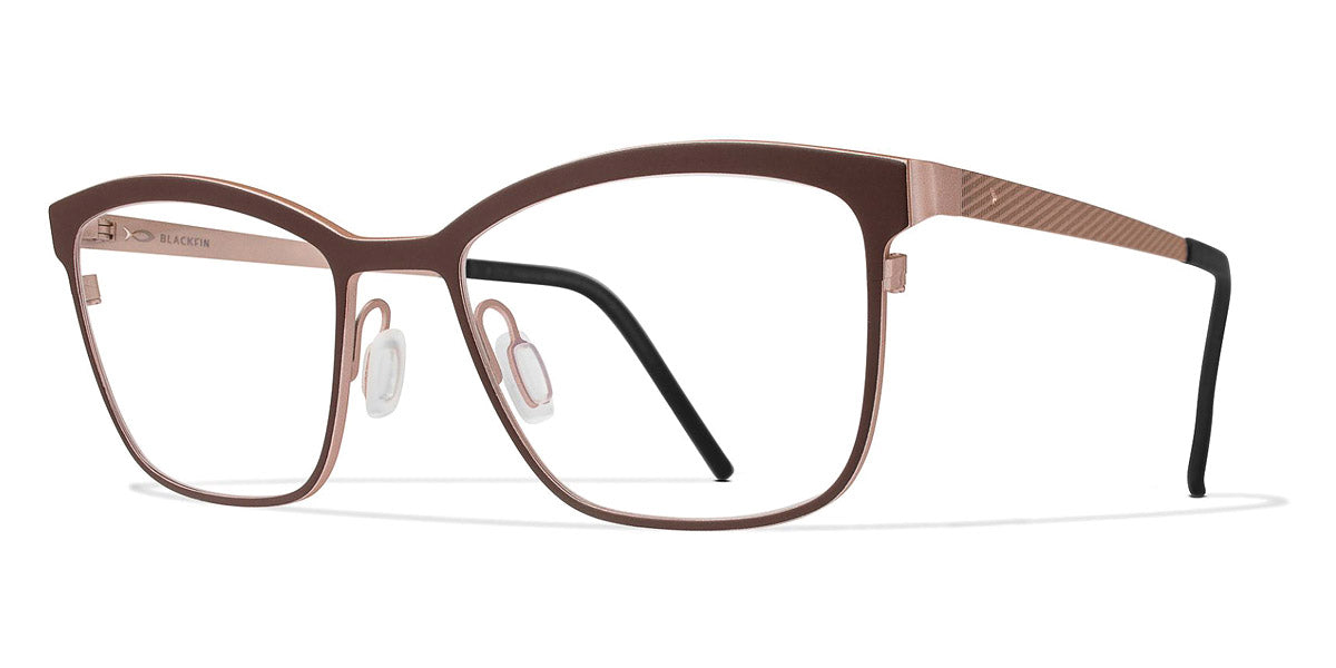 FORTROSE Eyeglasses by Blackfin. Color: Brown/Pink, Red/Pink, Violet/Gray, Grey/Fuchsia, Blue/Light Blue, Size: 50-18-145. Boldness gets redefined with the Blackfin FORTROSE's sharp angles and confident lines. Made to last and designed to turn heads, these sleek cat-eye glasses are a statement of audacity and flair. The striking design captures attention effortlessly, while the meticulous craftsmanship ensures they’re as comfortable as they are captivating. With their robust yet lightweight titanium build and one-of-a-kind style, the FORTROSE is for those who want their eyewear to do more than complement their look.