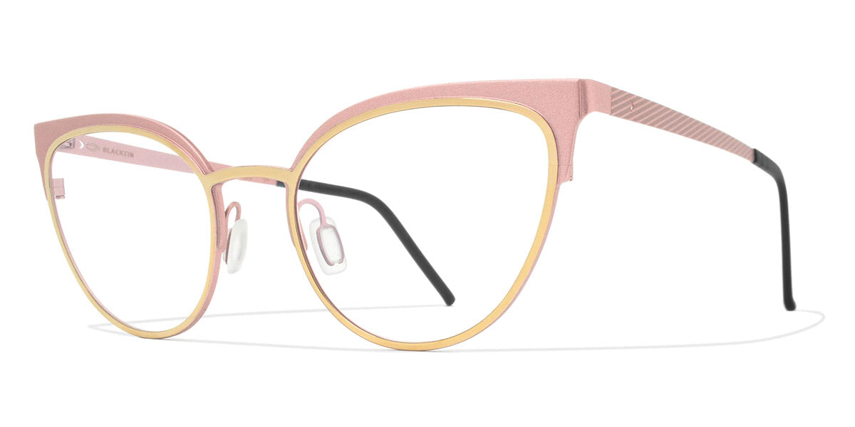 JUNIPER BAY Eyeglasses by Blackfin. Color: Light Blue/Blue, Gold/Black, Silver/Pink, Gray/Green, Blue/Pink, Black/Light Gold, Pink/Light Gold, Size: 51-20-145. The JUNIPER BAY eyeglasses by Blackfin offer a distinctive design that sets you apart from the crowd. These frames are made from premium materials, ensuring durability and comfort. The JUNIPER BAY is an excellent choice for those who appreciate unique style in their eyewear.