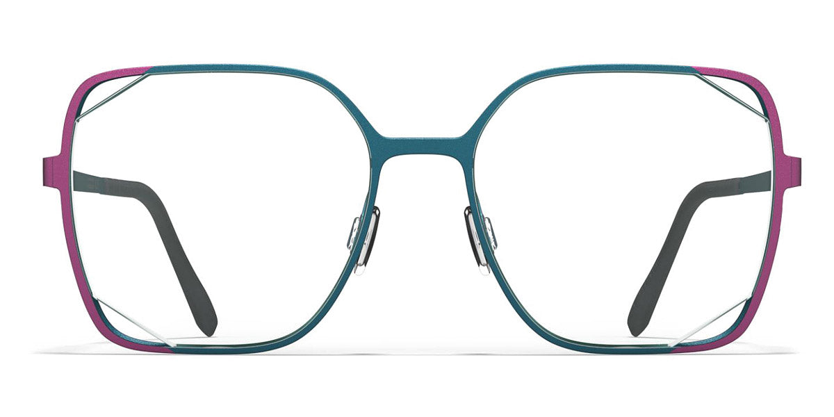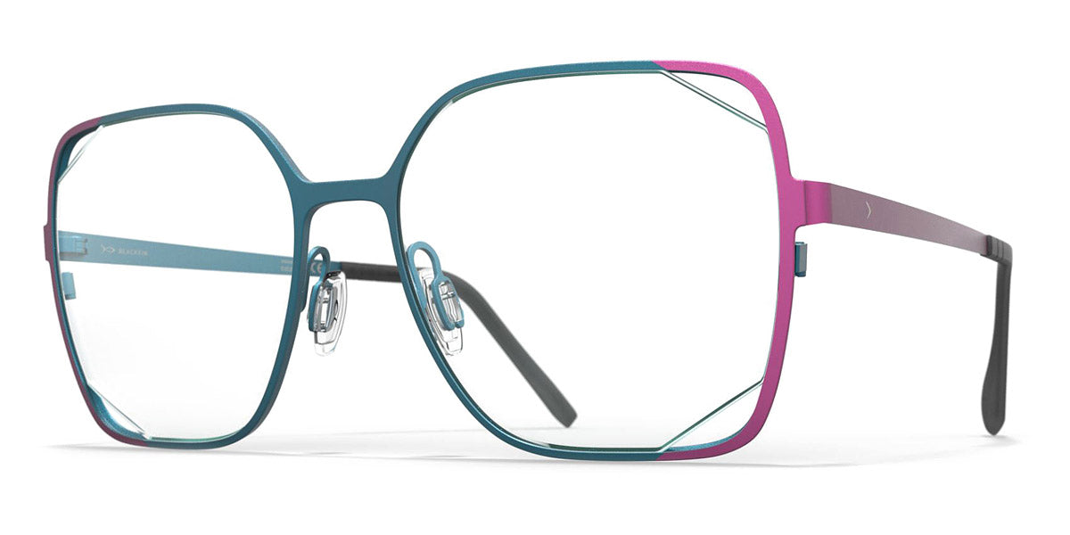 PAROS Eyeglasses by Blackfin. Color: Black/Silver, Blue/Ocher, Green/Purple, Purple/Rose, Red/Magenta, Size: 57-17-145. Lightweight and charming, PAROS eyeglasses by Blackfin are the epitome of modern elegance. These frames feature a refined silhouette that is both stylish and comfortable. The lightweight construction ensures a comfortable fit, while the premium materials used in the design guarantee durability. PAROS eyeglasses are perfect for those who appreciate sophisticated design and superior craftsmanship.