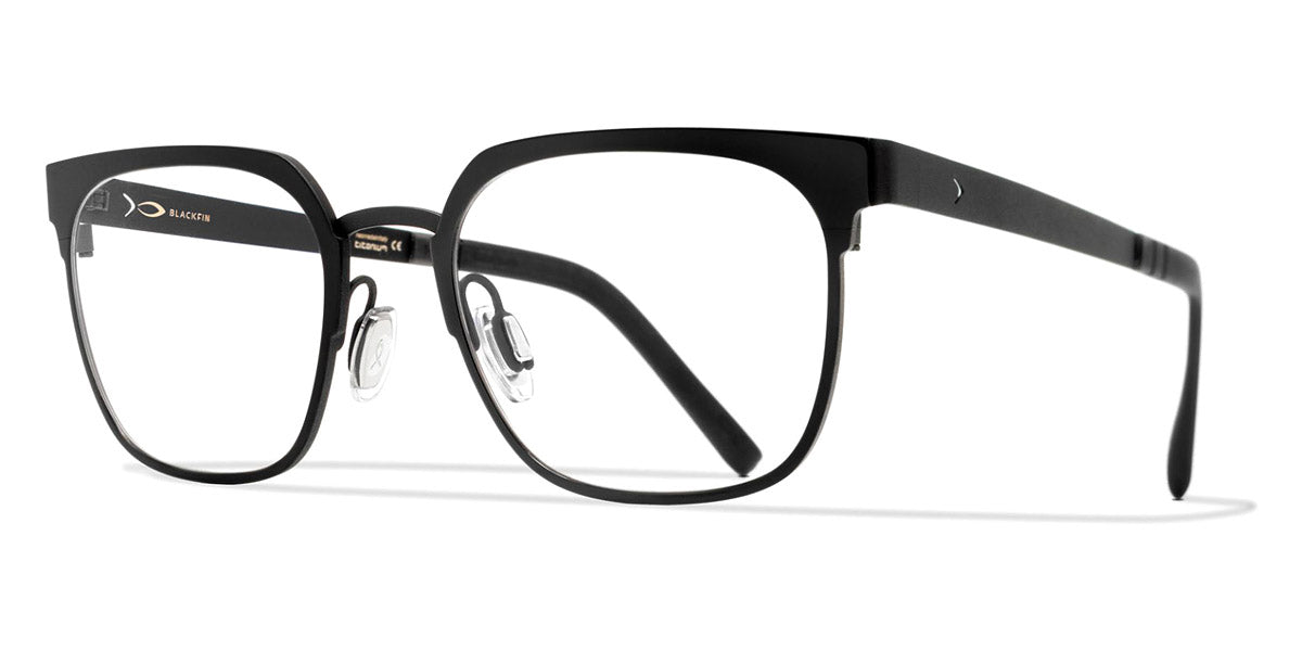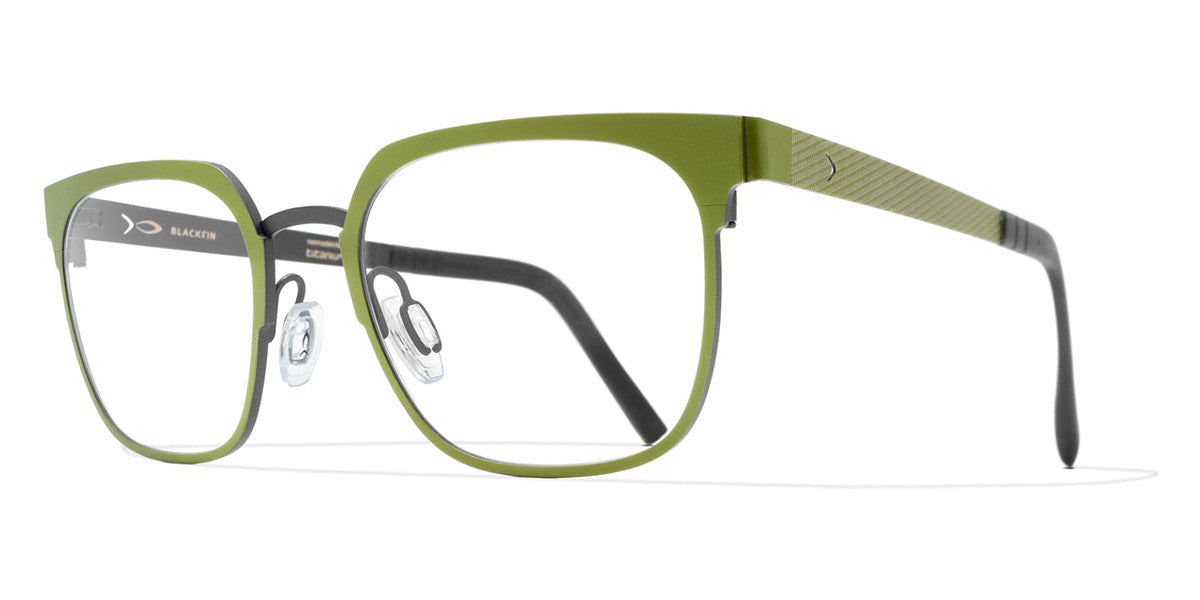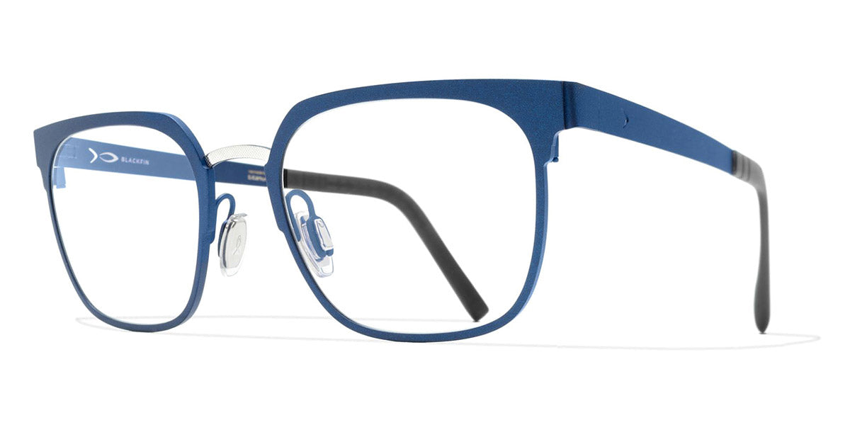 WINTER HARBOR Eyeglasses by Blackfin. Color: Black Gold/Black, Black/Green, Black/Silver, Blue/Red, Blue/Silver, Green/Gray, Size: 50-19-145. The Winter Harbor model from Blackfin captures the serene beauty of a calm, frosty bay. These eyeglasses are designed for individuals who value both style and substance in their eyewear. Reflecting the crisp, clean lines of a winter landscape, the frames offer a refreshing take on contemporary design. Winter Harbor glasses are perfect for those who seek a balance between bold statement pieces and subtle elegance. The thoughtful design ensures comfort during extended wear, making them suitable for both work and leisure activities. These frames are an ideal choice for those who appreciate eyewear that tells a story and reflects their unique personality.