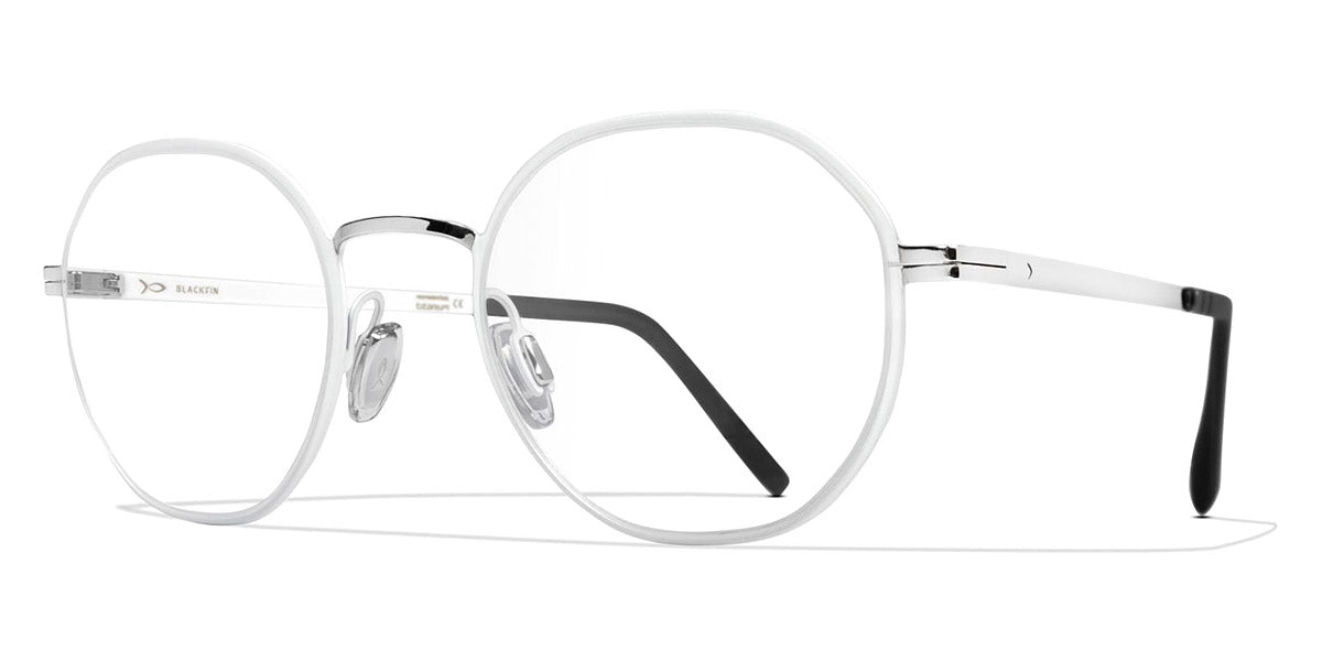 ZARA Eyeglasses by Blackfin. Color: Blackfin Black, Bright Blue, Pink Blush, Red/Pink, White/Silver, Light Gold/Blue, Size: 49-20-145. The ZARA eyeglasses by Blackfin redefine elegance in optical wear. These frames are a harmonious blend of classic and modern design elements, appealing to those who value understated luxury. The ZARA model is versatile enough to complement a wide range of personal styles, from professional attire to casual ensembles. With a focus on comfort and aesthetic appeal, these eyeglasses are perfect for individuals who want their eyewear to enhance their overall look without overpowering it.