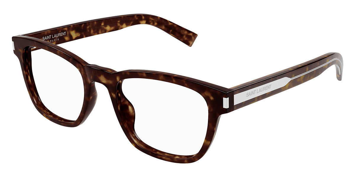664 Eyeglasses by Saint Laurent. Color: Black/Crystal, Havana/Crystal, Beige, Size: 52-20-145, Material: Acetate
