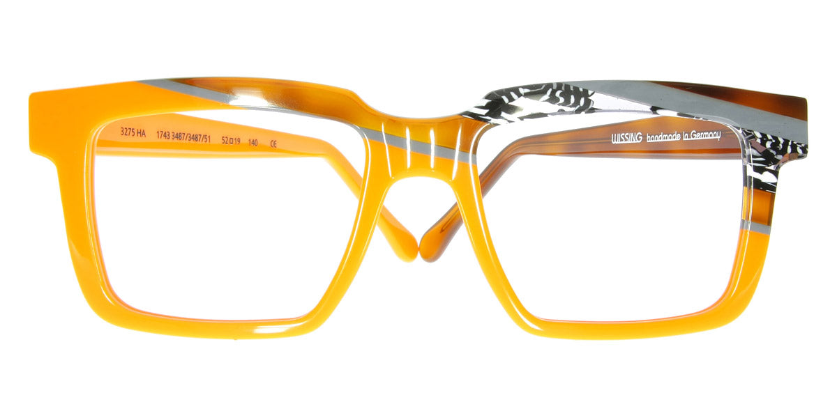 3275 HA Eyeglasses by Wissing . Boldness and exclusiveness are those distinguishing features that have always characterized Wissing. The reputed German brand creates one-off, unmistakable pieces of art, handcrafted from multi-layer acetate, which means endless possibilities for eyewear design. Each Wissing frame features a distinctive shape and comes offered in bright, eye-catching color combinations.