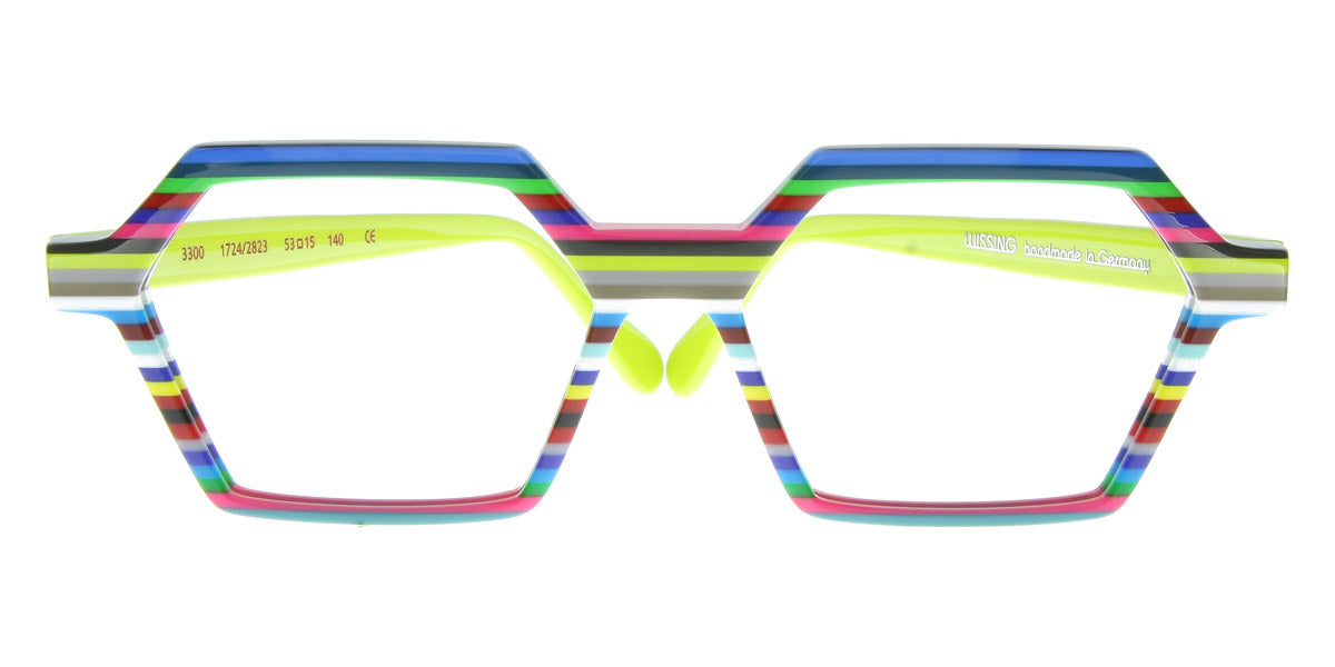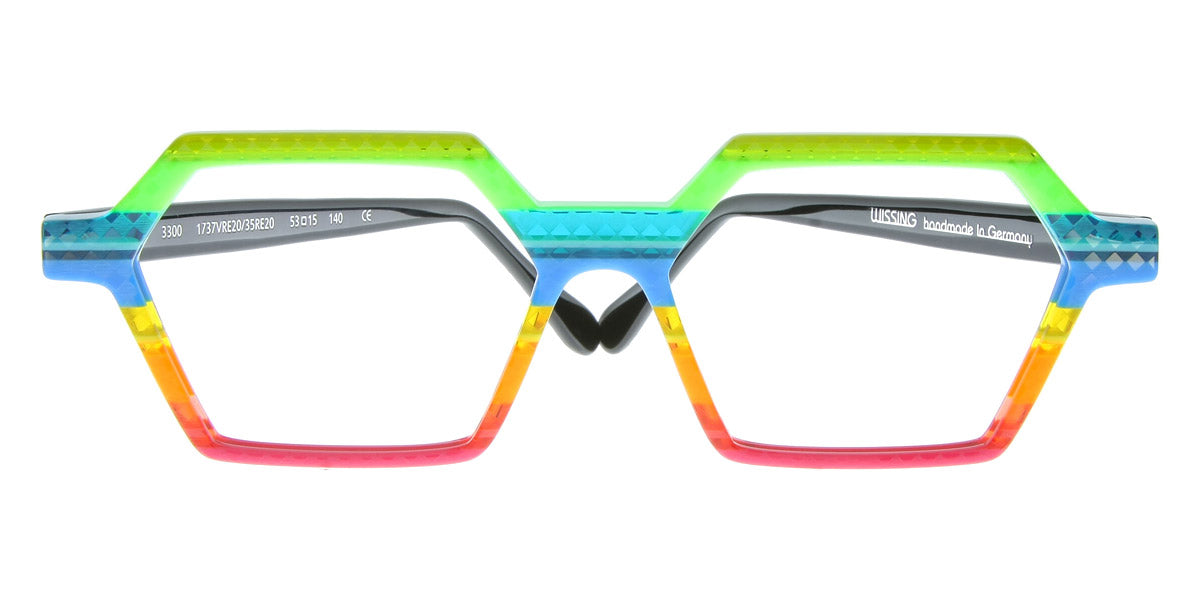 3300 Eyeglasses by Wissing . Boldness and exclusiveness are those distinguishing features that have always characterized Wissing. The reputed German brand creates one-off, unmistakable pieces of art, handcrafted from multi-layer acetate, which means endless possibilities for eyewear design. Each Wissing frame features a distinctive shape and comes offered in bright, eye-catching color combinations.