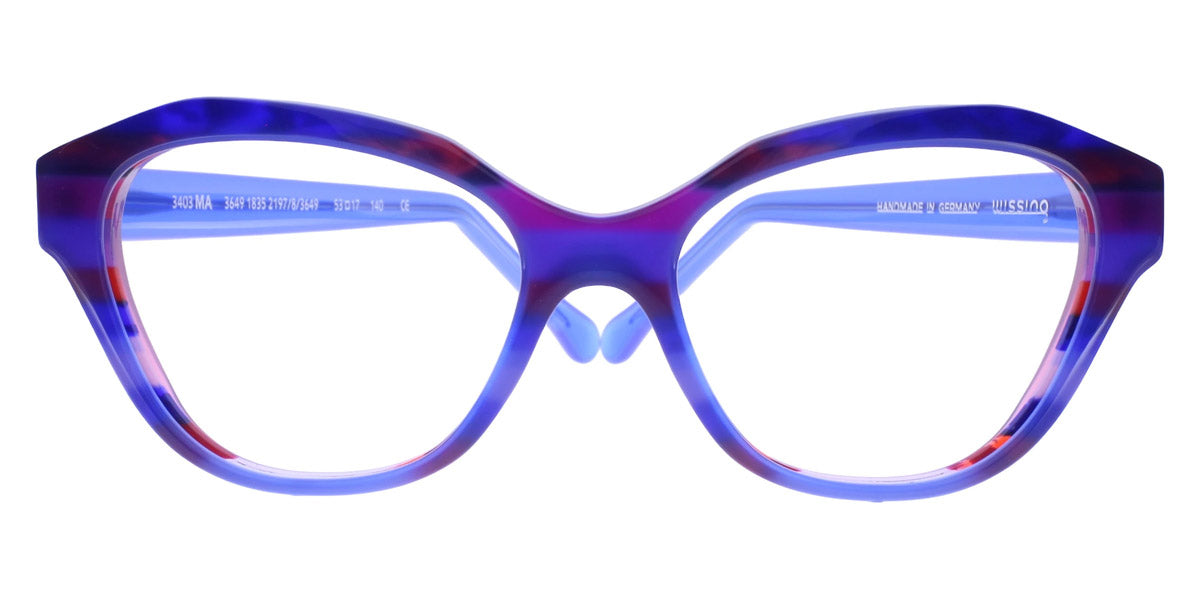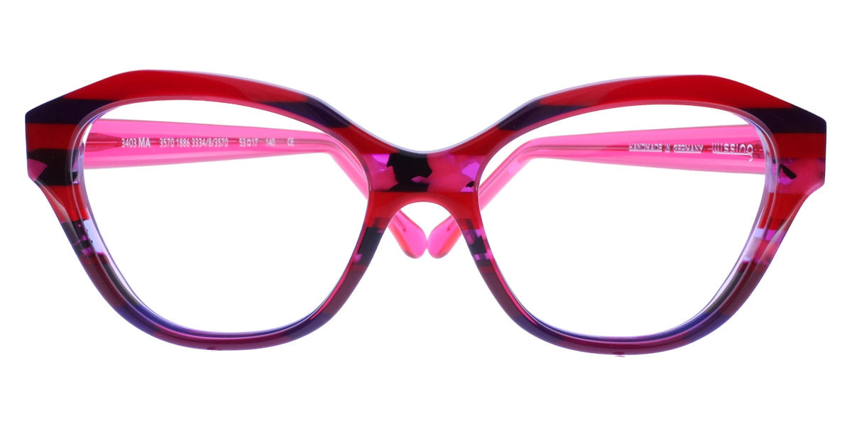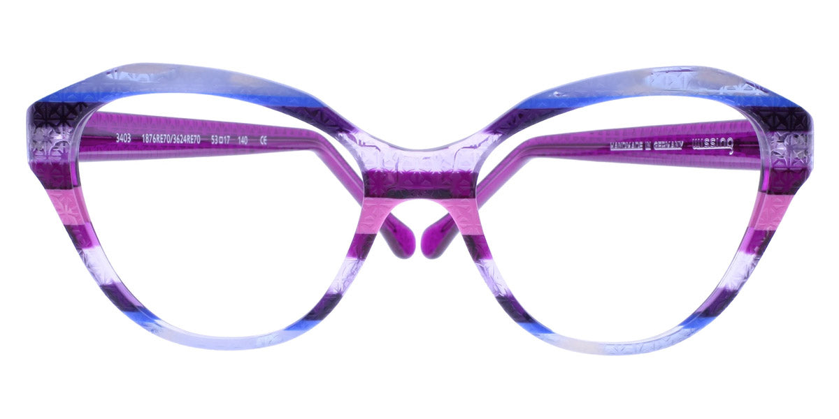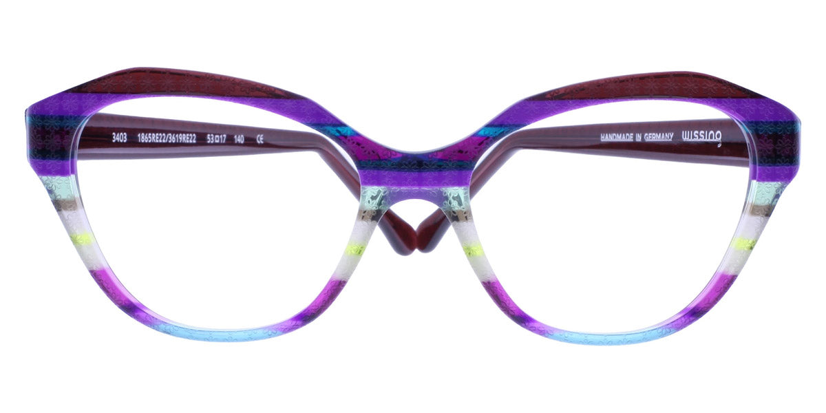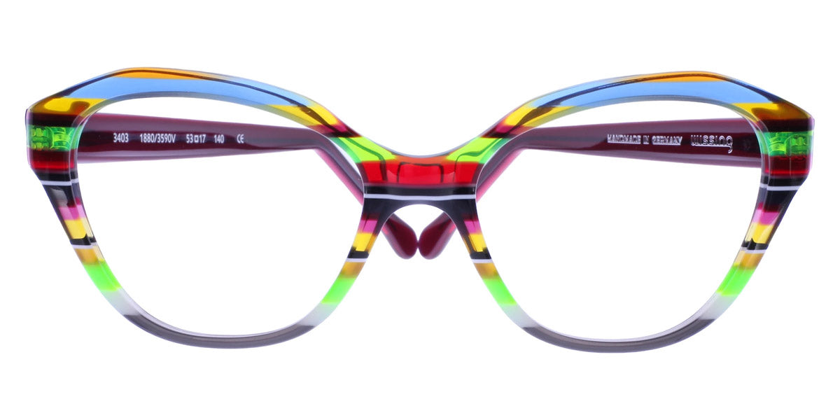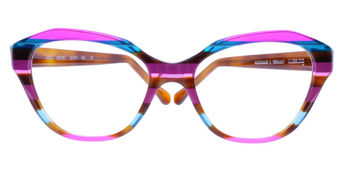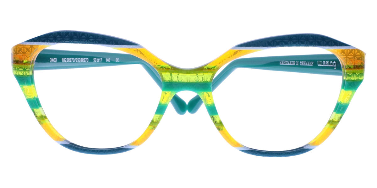 3403 Eyeglasses by Wissing . Boldness and exclusiveness are those distinguishing features that have always characterized Wissing. The reputed German brand creates one-off, unmistakable pieces of art, handcrafted from multi-layer acetate, which means endless possibilities for eyewear design. Each Wissing frame features a distinctive shape and comes offered in bright, eye-catching color combinations.