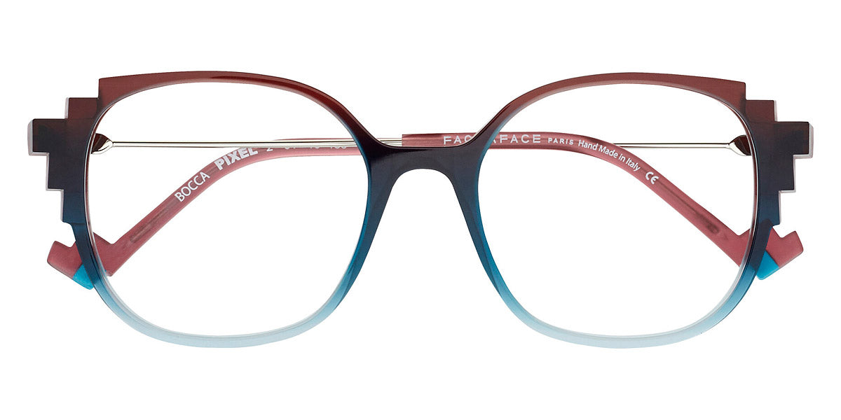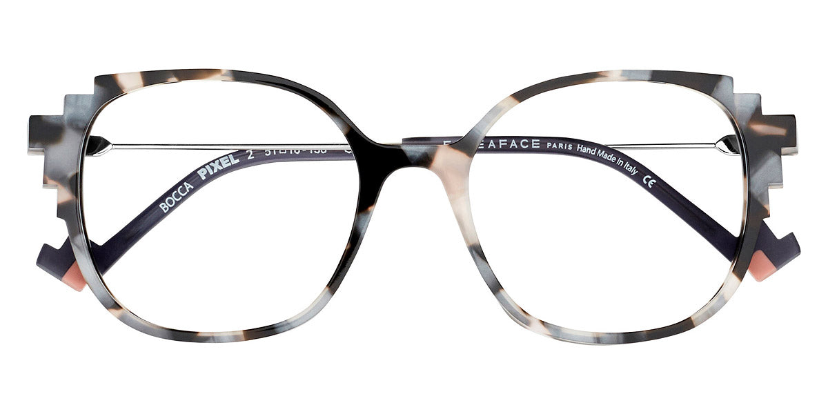 BOCCA PIXEL 2 Eyeglasses by Face A Face. Color: Almond Green/Gray Degrade (4901), Dark Mauve (203), Frozen Bordeaux Degrade (1102), Pearly Pink Camouflage (6092), Pink Blush Crystal (3006), Transparent Brown Flakes and Crystal (3506), Size: 51-18-135. Audacious, artistic, extraordinary… FACE A FACE glasses are at the cutting edge of design. Every frame is meticulously crafted by artisans using only the highest-quality materials: from 100% organic acetate to space-grade titanium. The resulting glasses are durable, lightweight, flexible, hypoallergenic, and most important of all, comfortable. And once coated in the exclusive FACE A FACE color palette, they are nothing short of magic. Full of spirit, light and personality, the spectacles cultivate boldness and vitality.