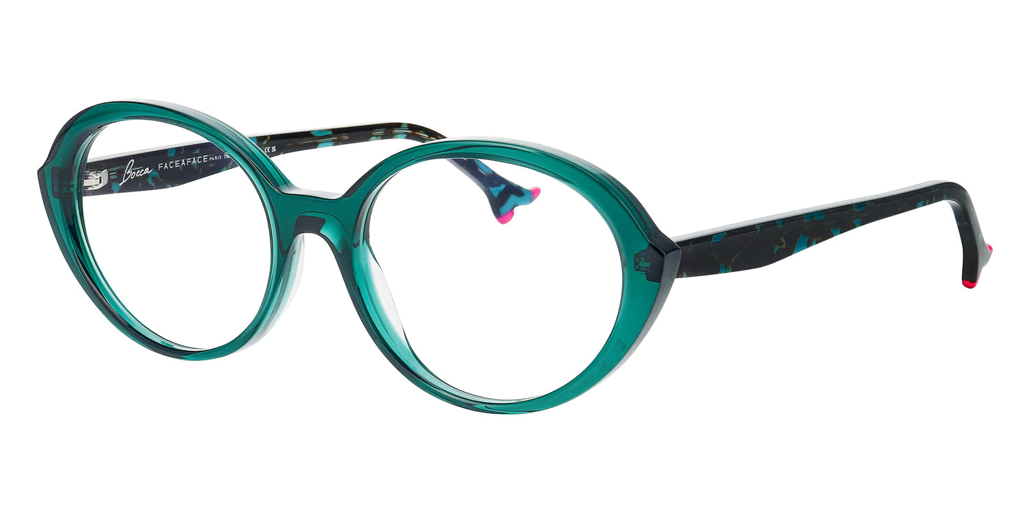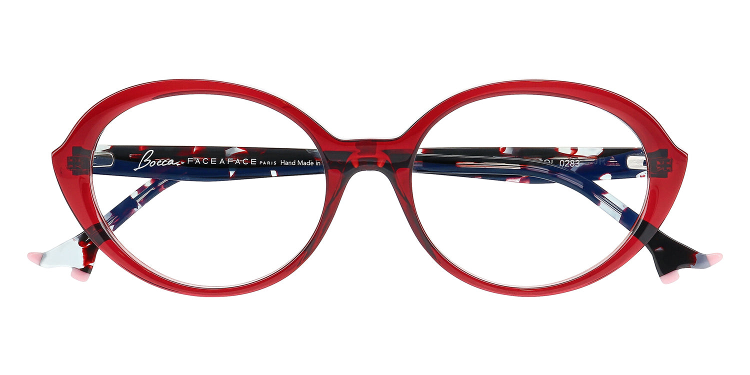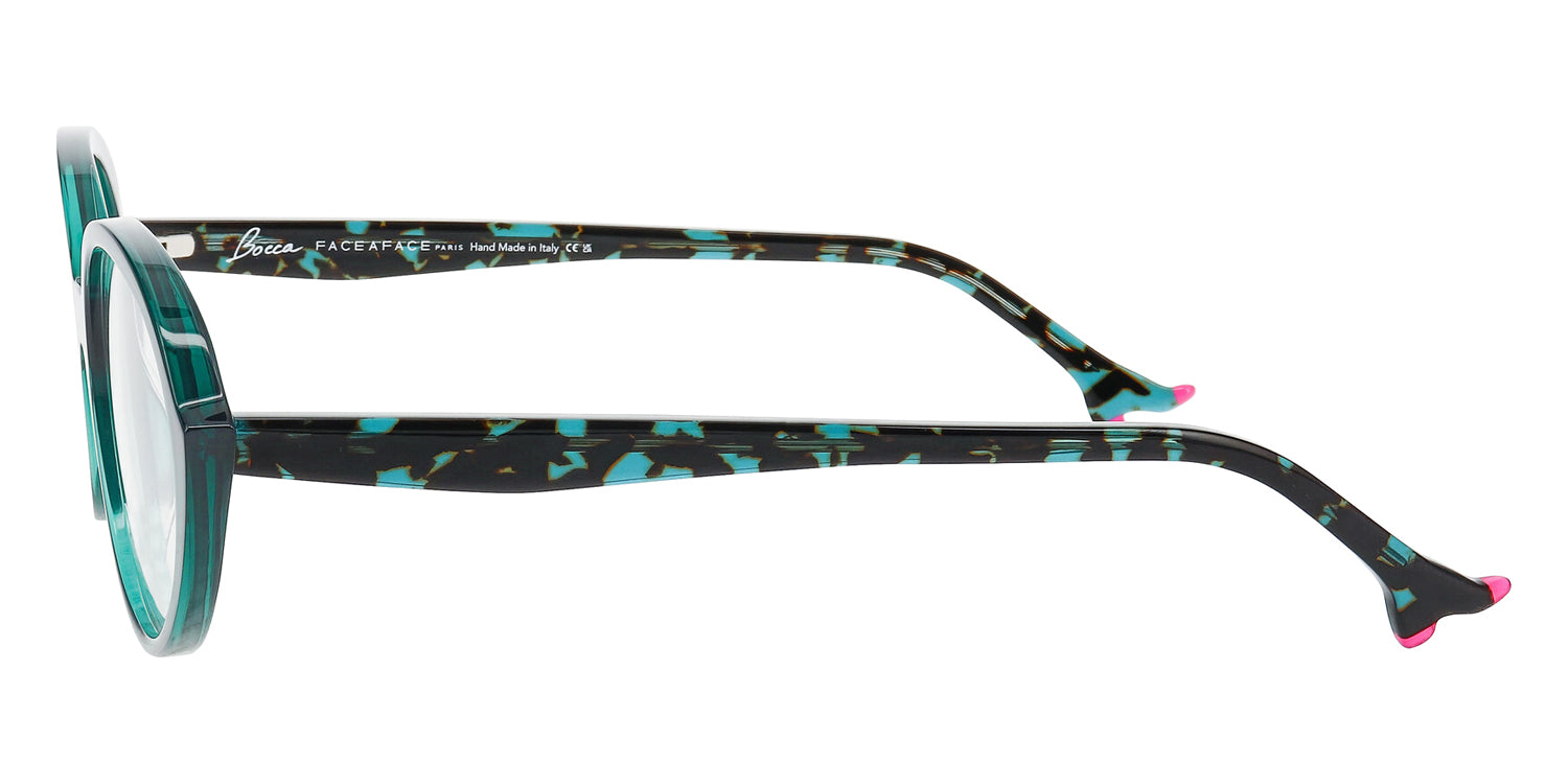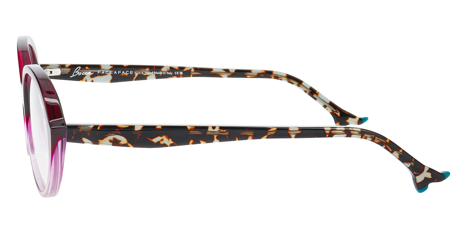 BOCCA PLUM 2 Eyeglasses by Face A Face. Material: Acetate, Color: Transparent Dark Green, Opaque Clear Pink, Blue Opale Tortoise, Transparent Eggplant, Red Transparent/ Flash Red, Violet Gradient Sunset, Size: 54-18-147.