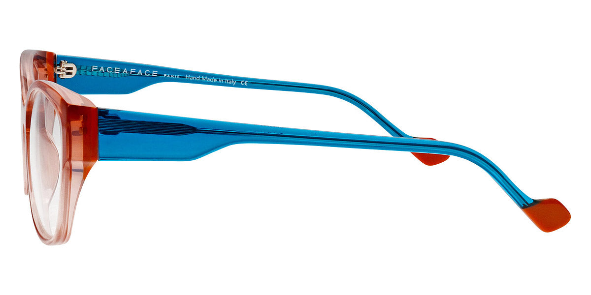 GEMMA 2 Eyeglasses by Face A Face. Color: Camouflage Pop (1324), Duck Blue (2045), Frozen Bordeaux Degrade (1102), Powdery Peach (1704), Red Transparent/Flash Red (2216), Transparent Dark Gray/Pink Nude Opaque (0096), Size: 55-16-140. Audacious, artistic, extraordinary… FACE A FACE glasses are at the cutting edge of design. Every frame is meticulously crafted by artisans using only the highest-quality materials: from 100% organic acetate to space-grade titanium. The resulting glasses are durable, lightweight, flexible, hypoallergenic, and most important of all, comfortable. And once coated in the exclusive FACE A FACE color palette, they are nothing short of magic. Full of spirit, light and personality, the spectacles cultivate boldness and vitality.