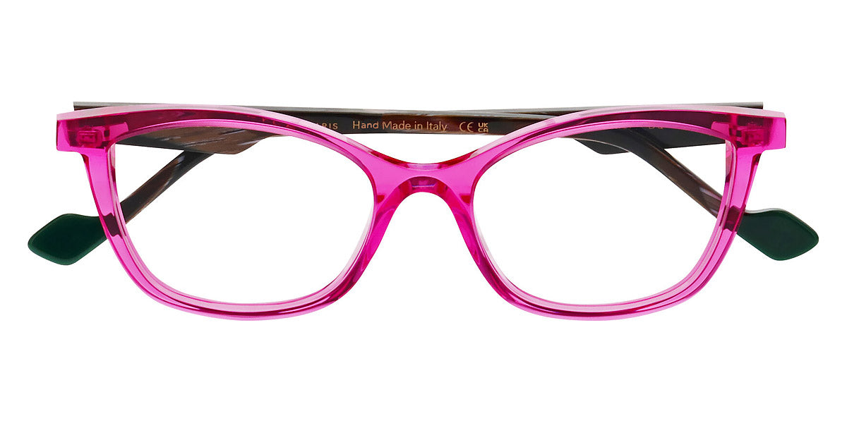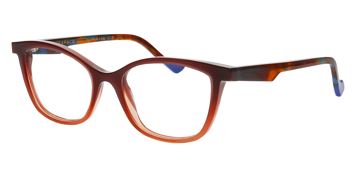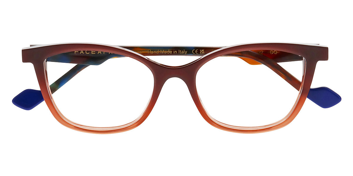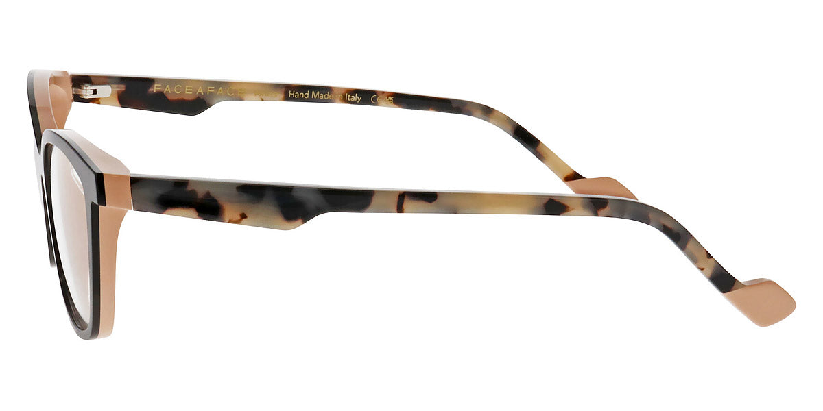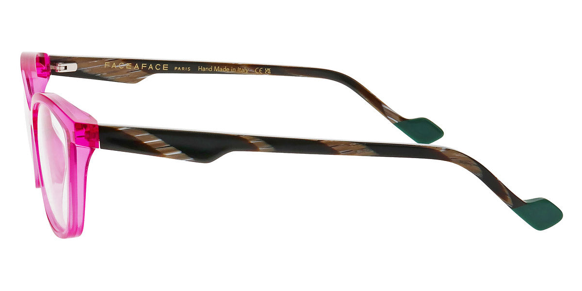 HANNA 1 Eyeglasses by Face A Face. Color: Black/Nude (1096), Blue Marble (5541), Gradient Caramel (3232), Gradient Green Smoked Glass (4174), Rose Fuchsia Transparent (084), Striped Raspberry (8256), Size: 50-16-140. Audacious, artistic, extraordinary… FACE A FACE glasses are at the cutting edge of design. Every frame is meticulously crafted by artisans using only the highest-quality materials: from 100% organic acetate to space-grade titanium. The resulting glasses are durable, lightweight, flexible, hypoallergenic, and most important of all, comfortable. And once coated in the exclusive FACE A FACE color palette, they are nothing short of magic. Full of spirit, light and personality, the spectacles cultivate boldness and vitality.