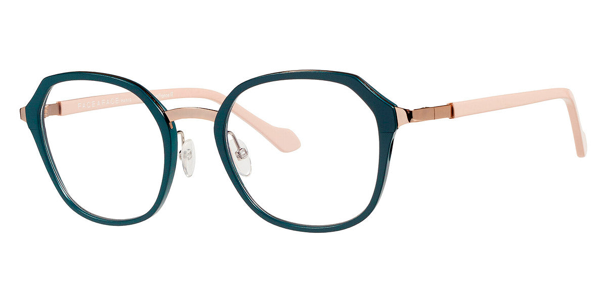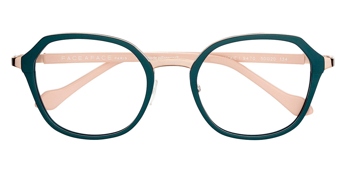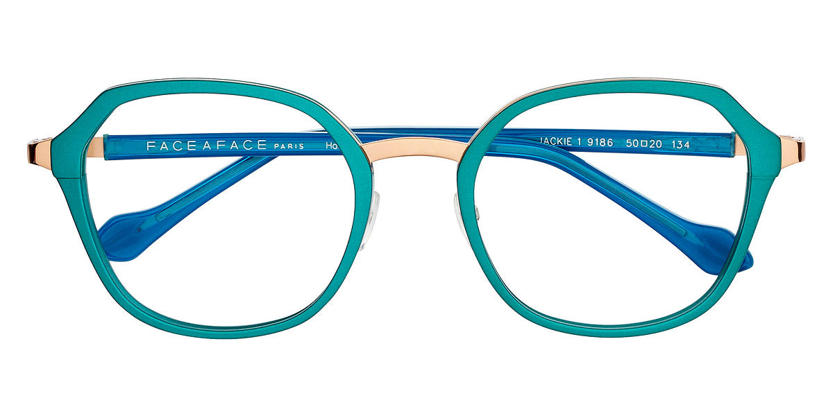 JACKIE 1 Eyeglasses by Face A Face. Color: Blue Gray (9470), Satin Dark Turquoise (9186), Ultra Matte Black (TM01), Size: 50-20-134. Audacious, artistic, extraordinary… FACE A FACE glasses are at the cutting edge of design. Every frame is meticulously crafted by artisans using only the highest-quality materials: from 100% organic acetate to space-grade titanium. The resulting glasses are durable, lightweight, flexible, hypoallergenic, and most important of all, comfortable. And once coated in the exclusive FACE A FACE color palette, they are nothing short of magic. Full of spirit, light and personality, the spectacles cultivate boldness and vitality.