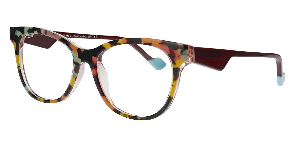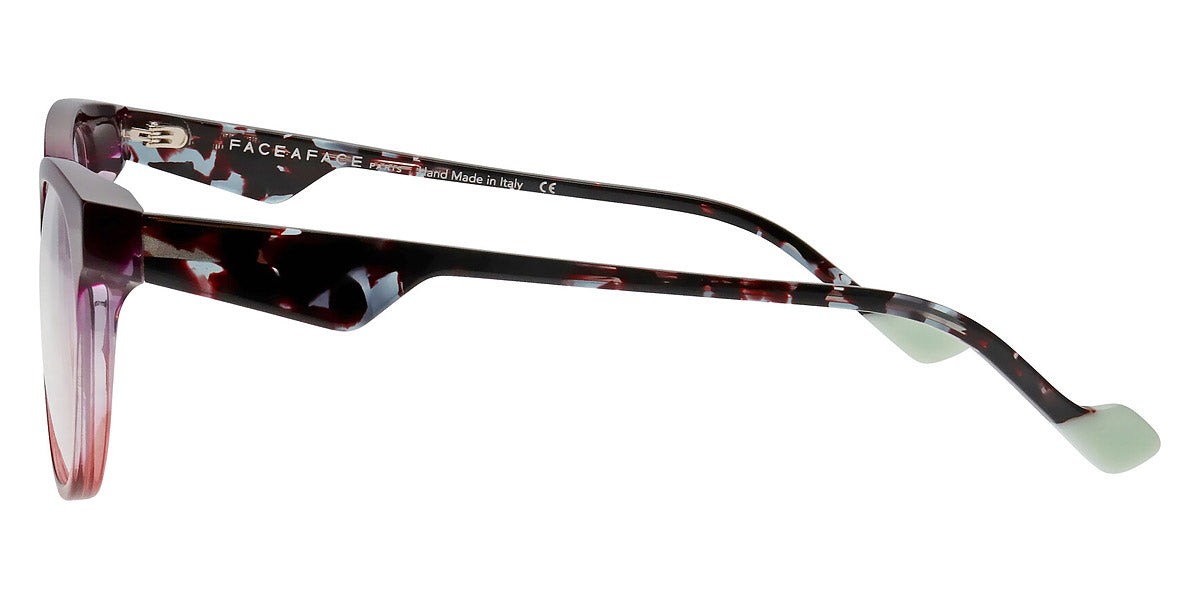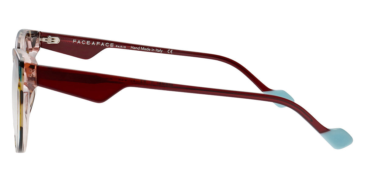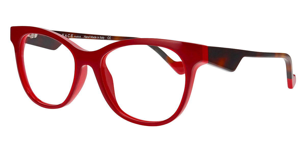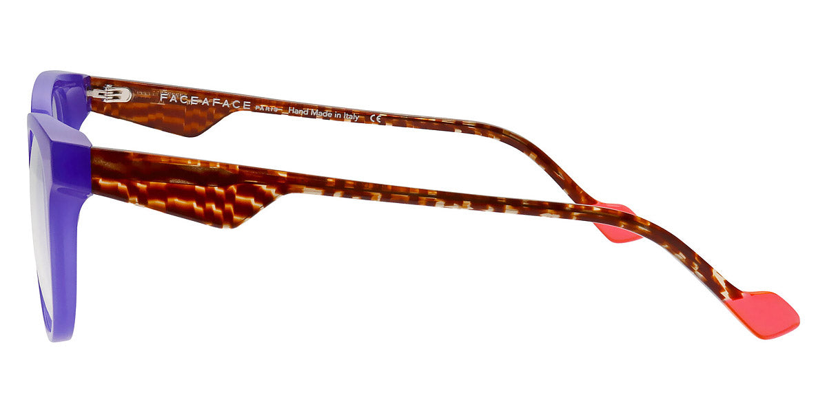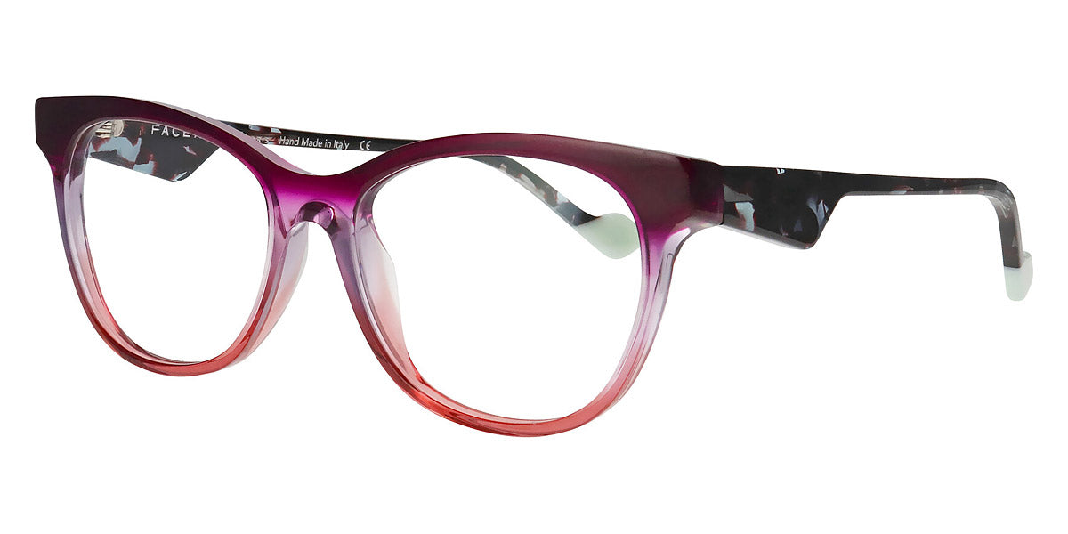 MERYL 2 Eyeglasses by Face A Face. Color: Camouflage Pop (1324), Crystal Pink Gray (1084), Duck Blue/Brun Seventies (5004), Majorelle Opalescent (8761), Red Transparent/Flash Red (2216), Violet Gradient Sunset (0343), Size: 54-16-140. Audacious, artistic, extraordinary… FACE A FACE glasses are at the cutting edge of design. Every frame is meticulously crafted by artisans using only the highest-quality materials: from 100% organic acetate to space-grade titanium. The resulting glasses are durable, lightweight, flexible, hypoallergenic, and most important of all, comfortable. And once coated in the exclusive FACE A FACE color palette, they are nothing short of magic. Full of spirit, light and personality, the spectacles cultivate boldness and vitality.