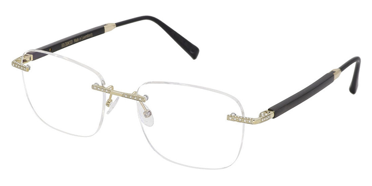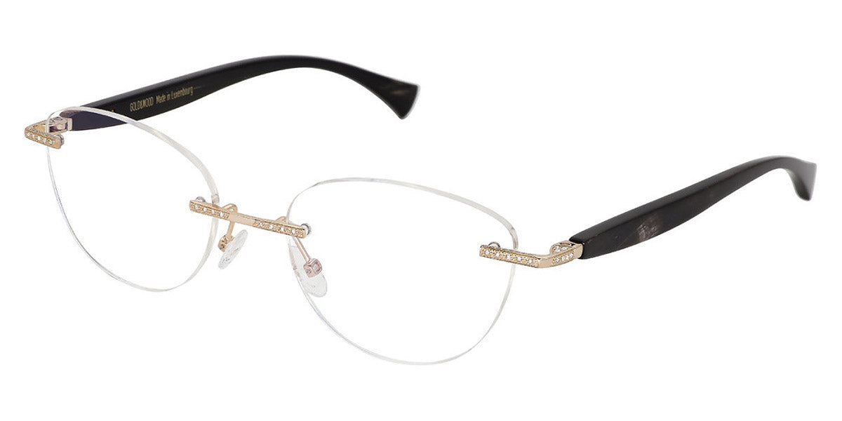 ALTESSE 11 Eyeglasses by Gold & Wood. Color: D.07.03.Cm40 Solid Rose Gold (About 8,2 Grams) - 48 White Brilliant Cut Diamonds, D.14.04.Cmd53 Solid Black Gold (About 8,2 Grams) - 48 White Brilliant Cut Diamonds, D.05.01.Cm4 Solid Champagne Gold (About 8,2 Grams) - 48 White Brilliant Cut Diamonds. If you are hunting for glasses that turn heads, consider Gold & Wood eyewear! Handcrafted from the finest materials, like exotic woods, buffalo horn and precious metals, the frames not only offer incomparable quality and style, but they also provide a unique level of comfort due to their weightlessness – making them perfect for those who wear glasses all day long. Each Gold & Wood frame is carefully crafted by hand focusing on creativity and innovation. From the sketch to the frame, dozens of technical steps follow each other to give life to a real piece-of-art. Overall, Gold & Wood is a brand that is synonymous with quality and luxury. The Gold & Wood frames are a testament to the brand's commitment to craftsmanship, innovation, and attention to detail.
