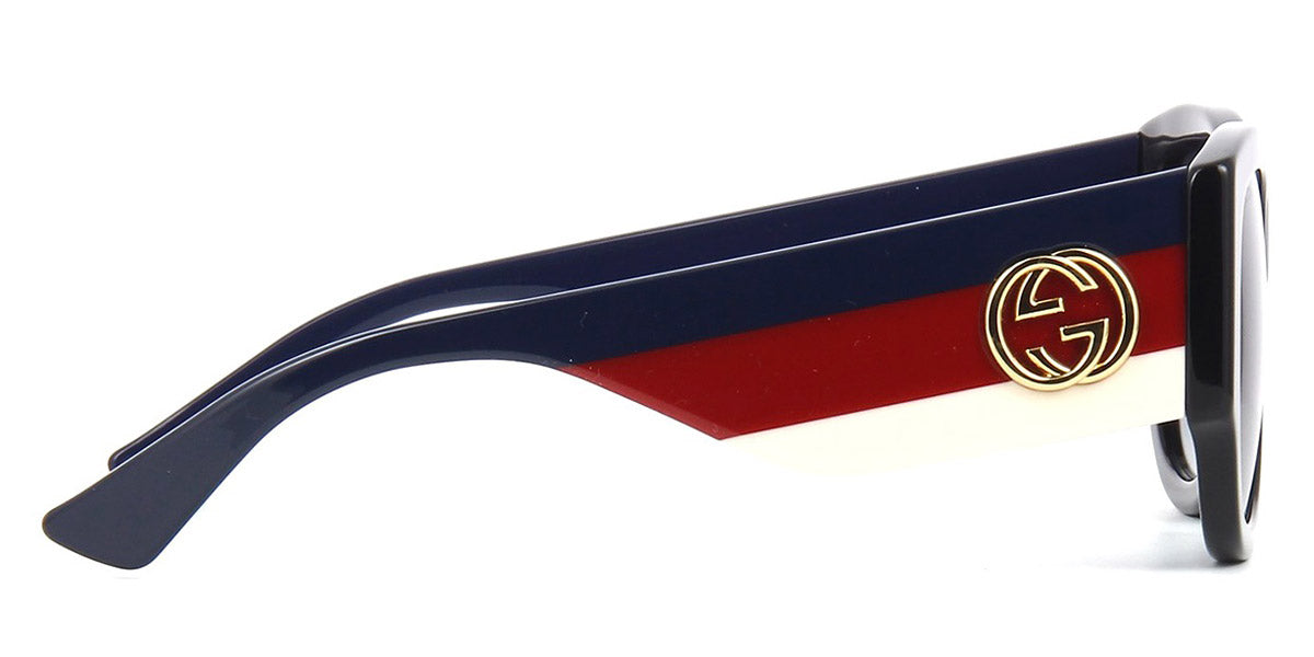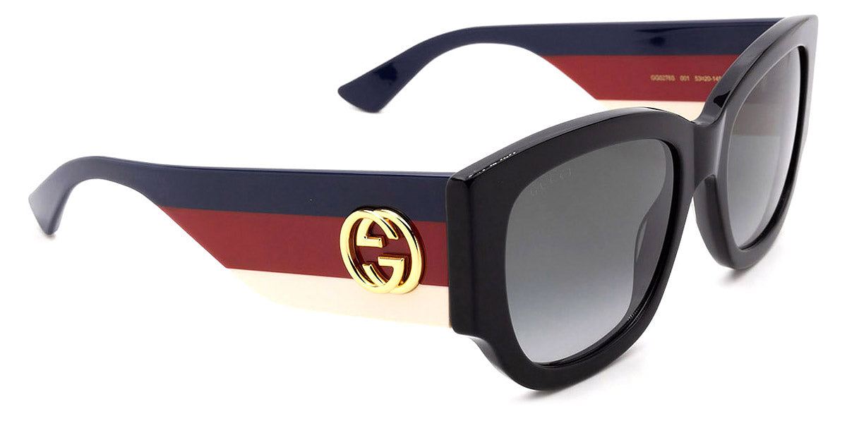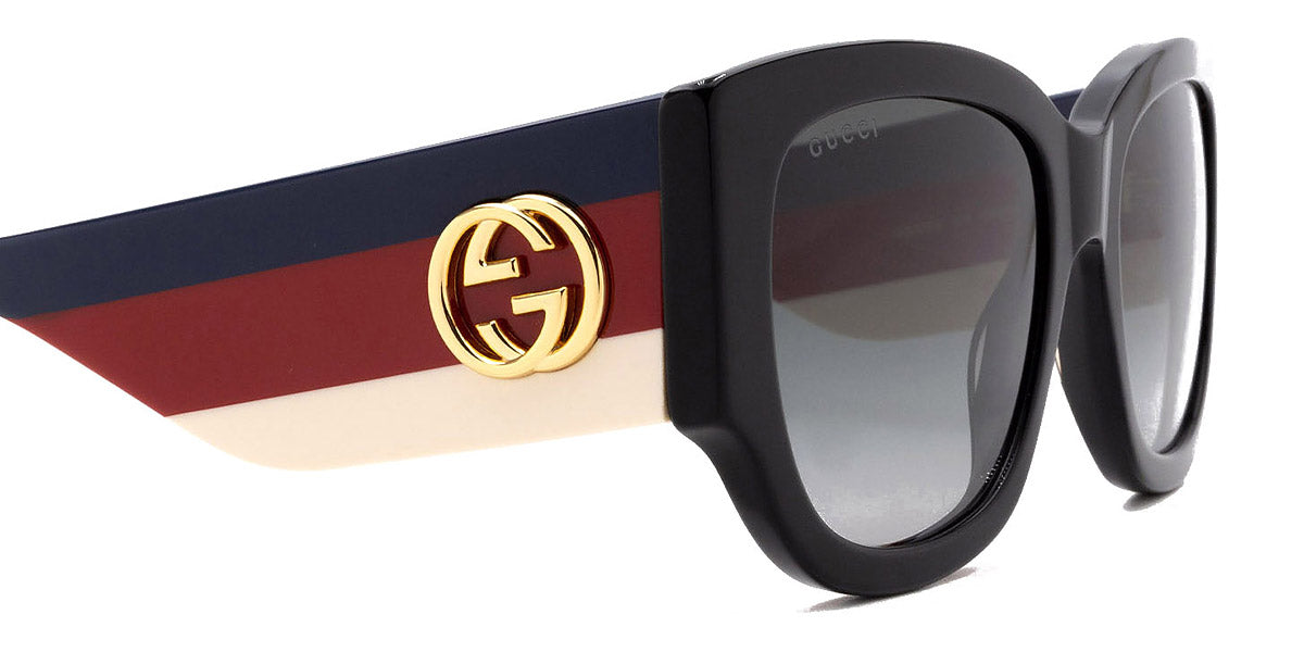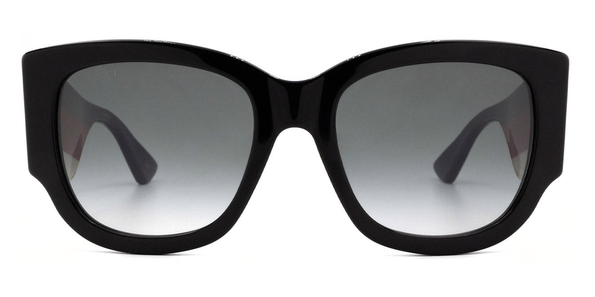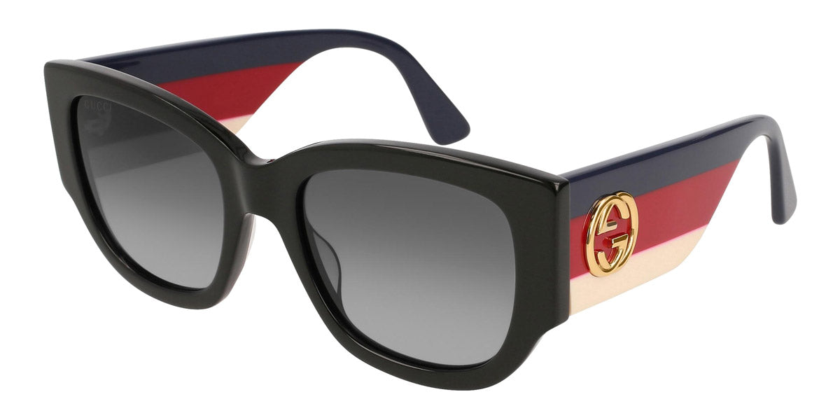 GG0276S Sunglasses by Gucci. Color: Black/Multicolor, Size: 53-20-145. Gucci glasses are glamorous and chic, with bold contours and exaggerated volumes, which are ultimate forms of self-expression. Inspired by the vintage era, the reinterpreted iconic eyewear silhouettes are embellished with elaborate decorations and bright colors. Each and every design represents the pinnacle of Italian craftsmanship and is unsurpassed for its quality and attention to detail. Every new collection is a range of striking shapes and colors; an outstanding mix of playful vibes with retro undertones.