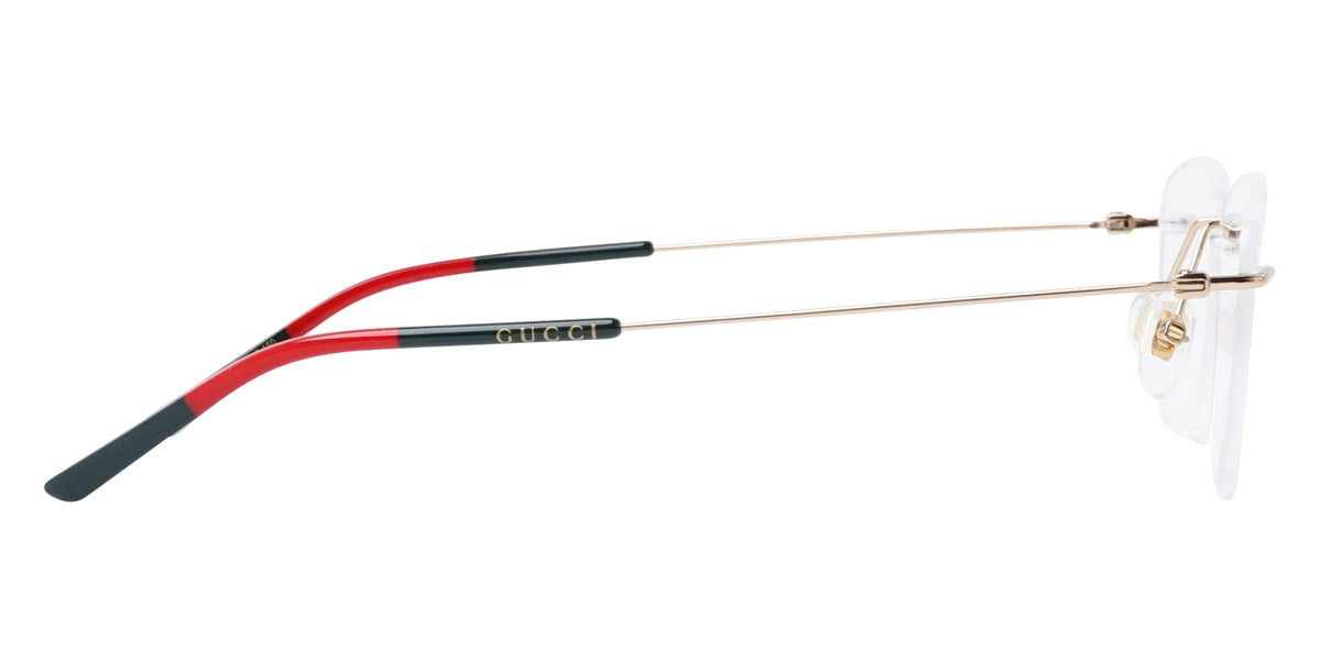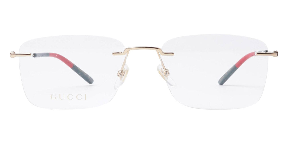 GG0399O Eyeglasses by Gucci. Color: Gold, Multicolor, Size: 56-17-150. Gucci glasses are glamorous and chic, with bold contours and exaggerated volumes, which are ultimate forms of self-expression. Inspired by the vintage era, the reinterpreted iconic eyewear silhouettes are embellished with elaborate decorations and bright colors. Each and every design represents the pinnacle of Italian craftsmanship and is unsurpassed for its quality and attention to detail. Every new collection is a range of striking shapes and colors; an outstanding mix of playful vibes with retro undertones.
