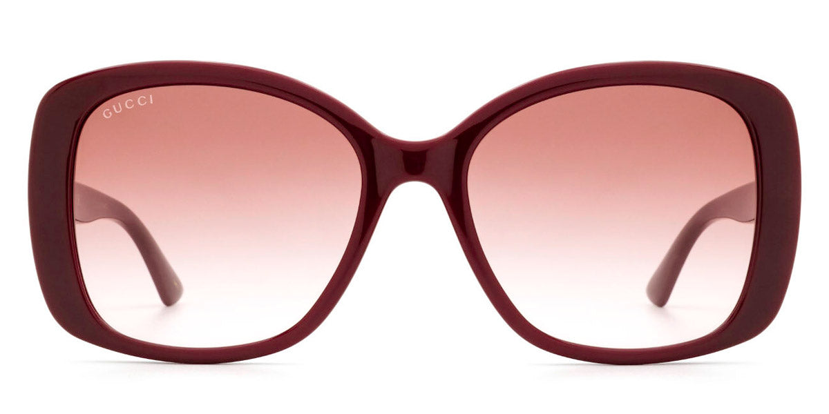 GG0762S Sunglasses by Gucci. Color: Black, Burgundy, Havana, Size: 56-18-145. Gucci glasses are glamorous and chic, with bold contours and exaggerated volumes, which are ultimate forms of self-expression. Inspired by the vintage era, the reinterpreted iconic eyewear silhouettes are embellished with elaborate decorations and bright colors. Each and every design represents the pinnacle of Italian craftsmanship and is unsurpassed for its quality and attention to detail. Every new collection is a range of striking shapes and colors; an outstanding mix of playful vibes with retro undertones.