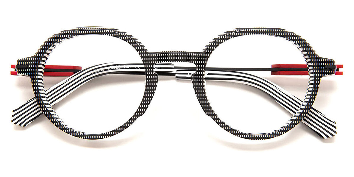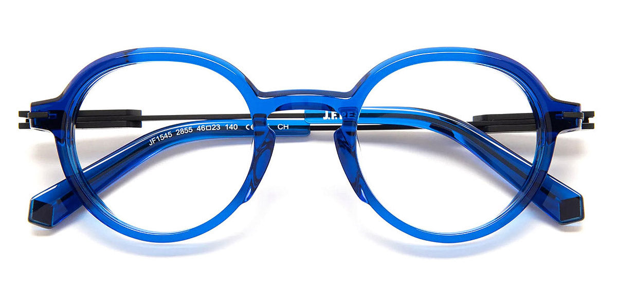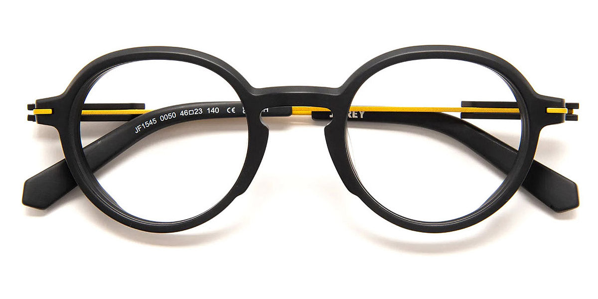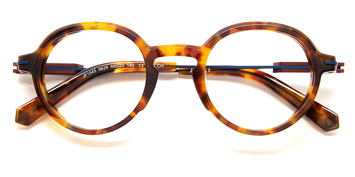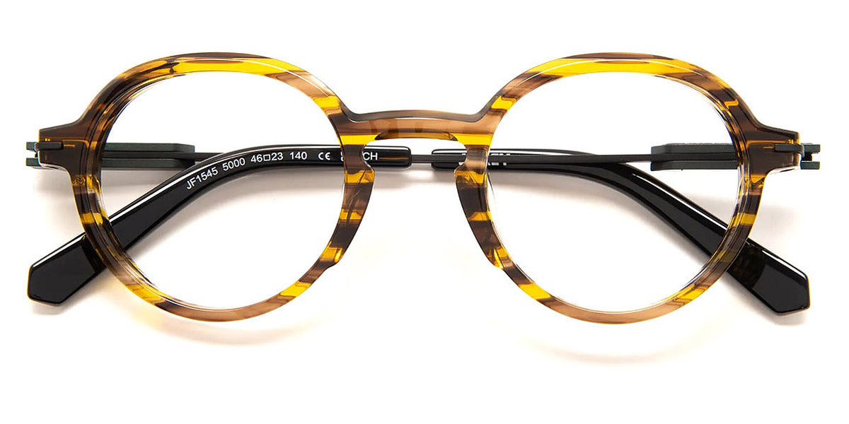 JF1545 Eyeglasses by J.F. Rey. Color: 0050 Black, 0830 Black and Cristal Pixel, 2855 Blue Primary, 5000 Yellow and Brown Striped, 9829 Demi, Size: 46-23-140.