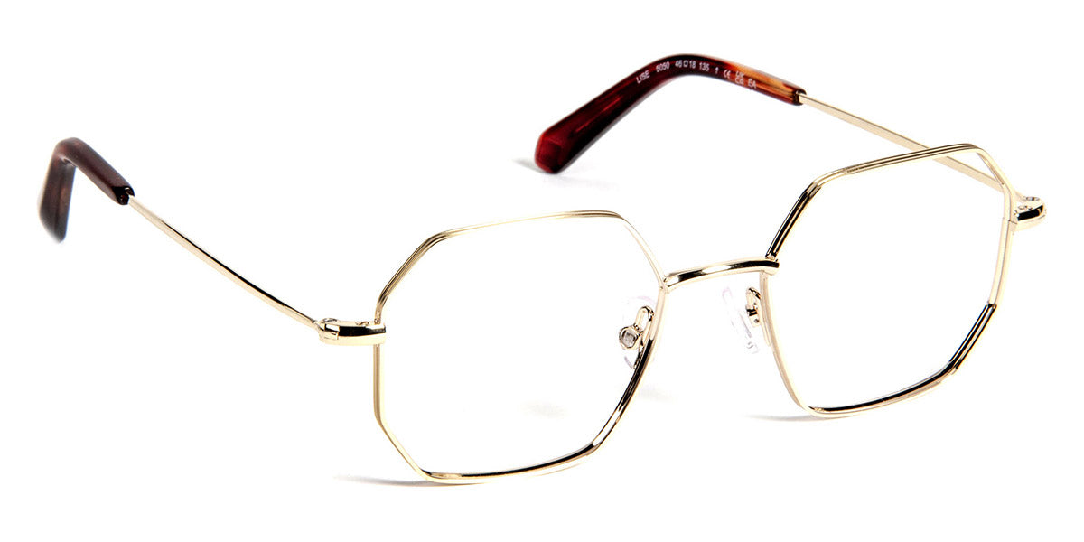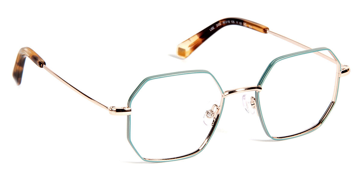 Lise Eyeglasses by J.F. Rey. Color: 3570 Burgundy/Purple/Blue, 4010 Jade/Ruthenium/White, 0050 Black/Shiny Gold, 2455 Blue/Shiny Pink Gold, 5050 Shiny Gold, 7555 Plum/Shiny Pink Gold, Size: 51-18-140. Demonstrate your elegance with the J. F. Rey Lise glasses, a timeless embodiment of grace and sophistication. The rectangular frames and sleek lines create a look that seamlessly blends modern design with classic charm. Lise glasses are not just an accessory; they are a symbol of refined style, perfect for those who appreciate the beauty of enduring design. Step into a world where sophistication meets contemporary chic with these versatile frames.