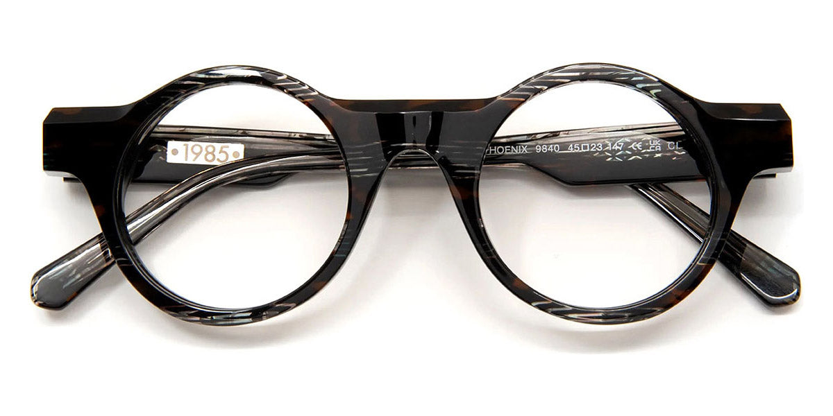 Phoenix Eyeglasses by J.F. Rey. Color: 0030 Black, 2915 Blue Steel, 9840 Brown and White Striped, Size: 45-23-147.