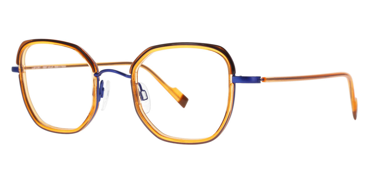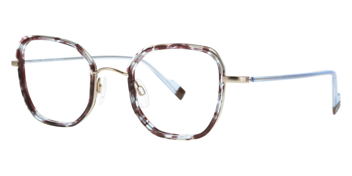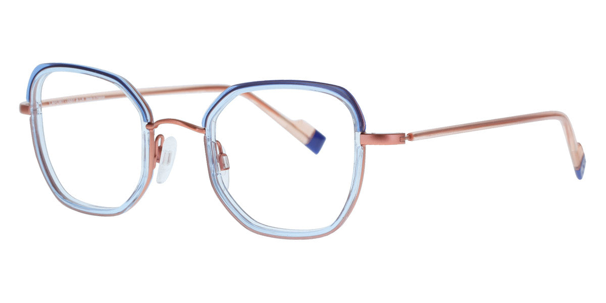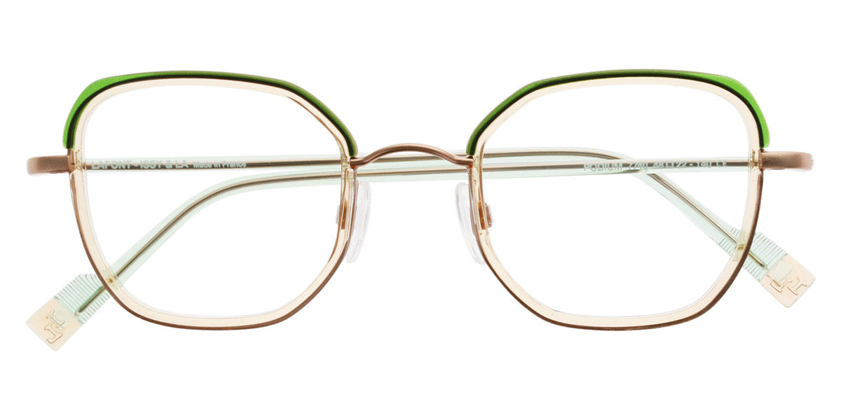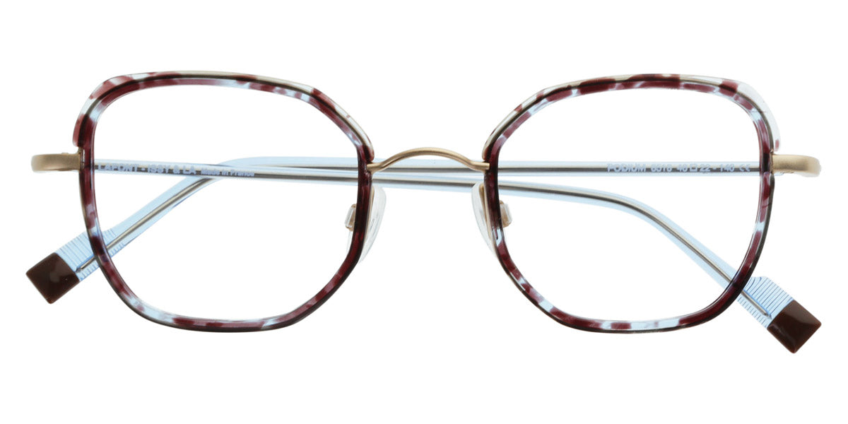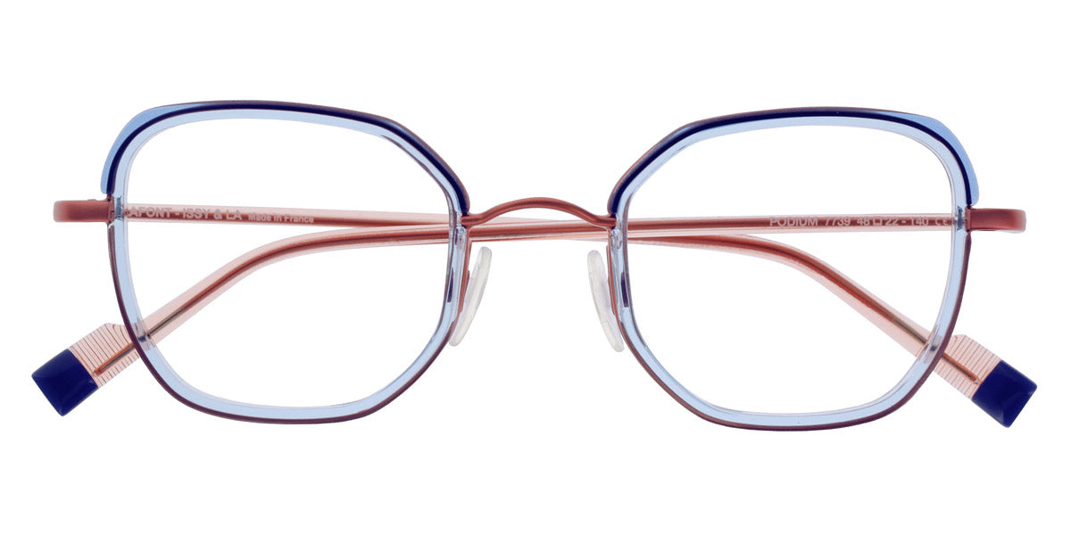 Podium Eyeglasses by Lafont® Color: Blue, Pink, Golden, Size: 48-22-140. If you are a fan of the charming and elegant Parisian style, the Lafont glasses are to your liking! By experimenting with shapes, materials and colors, the designers create eye,catching styles that will add an artistic look to any outfit. The frames feature delicate silhouettes and fascinating colorations to stand out from the rest. The process of manufacturing a pair of Lafont glasses takes 8 to 14 weeks and involves 120 to 220 successive operations, depending on the complexity of the frame. Most of these processes are manual, which makes Lafont eyewear a real work,of,art.