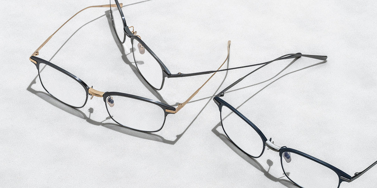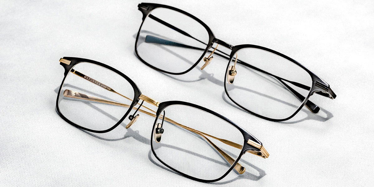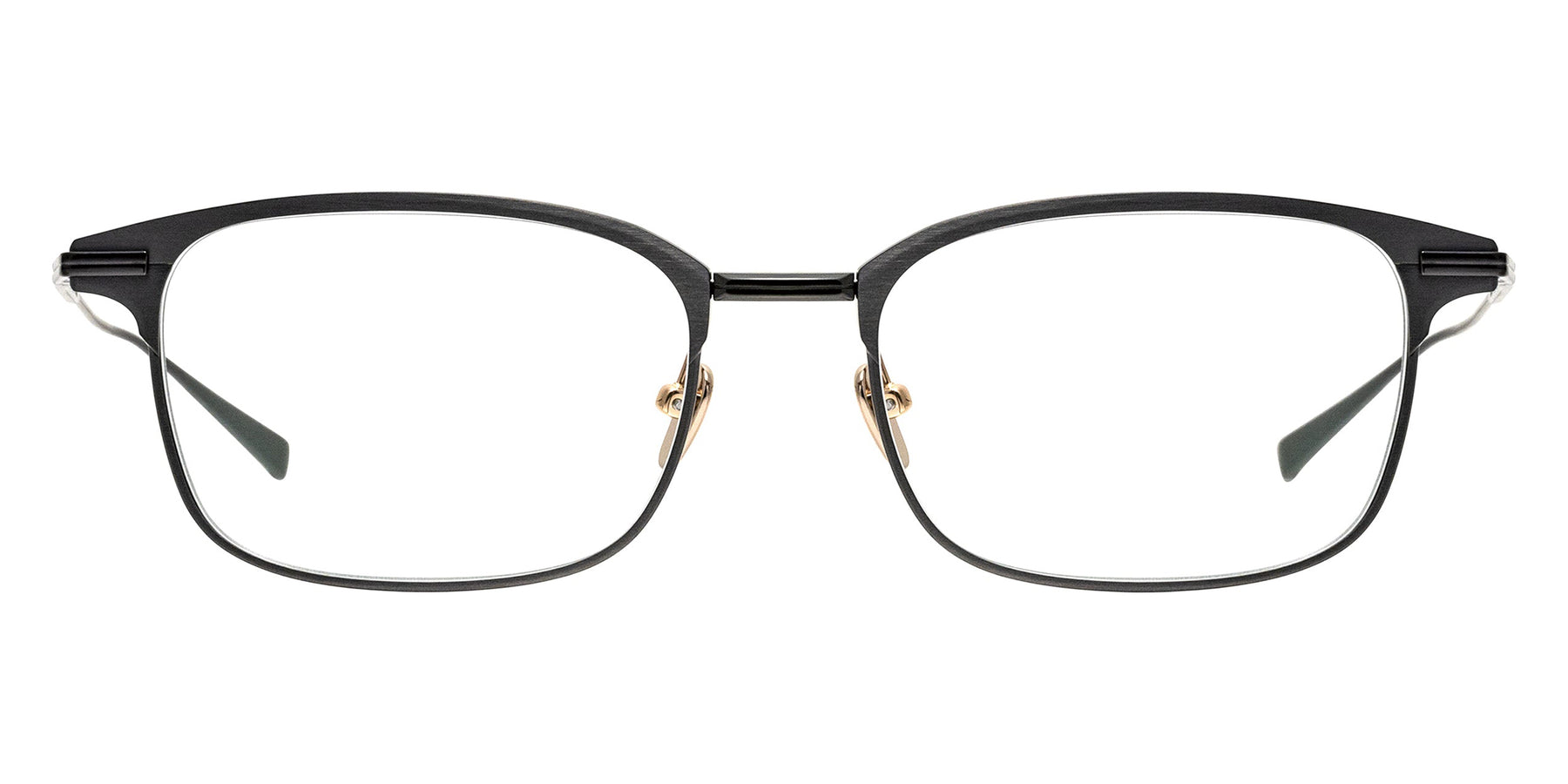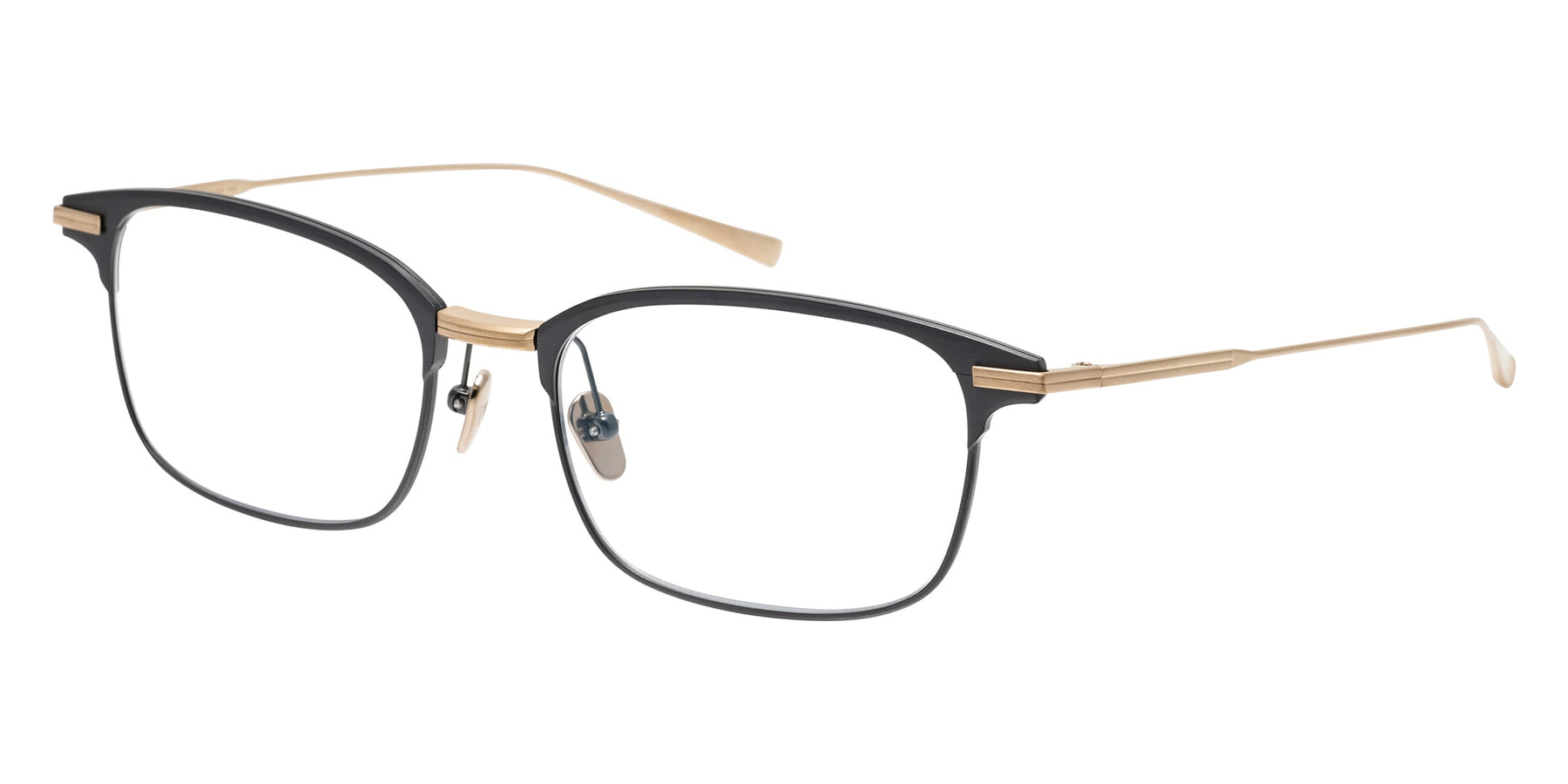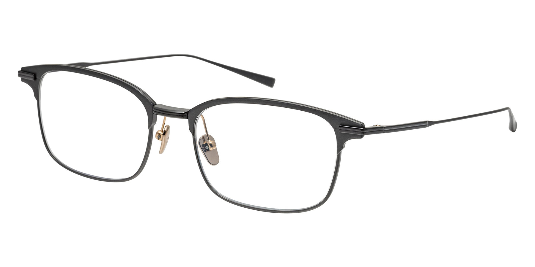 Masunaga® LENOX Eyeglasses by Masunaga®. Color: 39 BLACK/GOLD, 25 DBL/Gray, 19 BLACK, Size: 56-18-145. Rounded square shape gives a smart impression with elegance. The front, which appears to be a combination of blow parts, is made from one-piece metal using skilled pressing techniques. The three-dimensionality creates contrast, creating a rich all-titanium frame that allows you to fully enjoy the texture of metal.