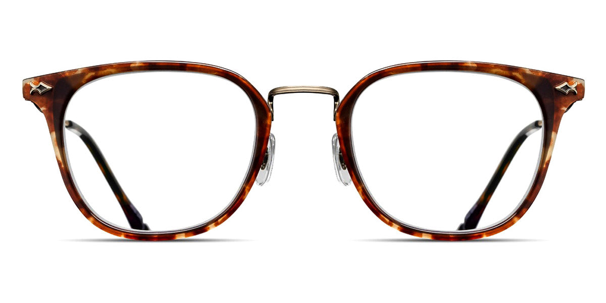 M3113 Eyeglasses by Matsuda. Color: Antique Silver / Navy Demi Brown, Brushed Gold / Matte Black, Brushed Silver / Blue Demi, Matte Black / Black, Size: 50-22-140. Meet the M3113 from Matsuda: a versatile and unique square frame that's sure to catch your eye. It has a youthful vibrancy thanks to a thin overlay of Japanese acetate and ergonomic, curved temple tips. But there's more to it than meets the eye - underneath the overlay is a precious metal frame and temples finished with an elegantly placed coat of lacquer inspired by the Gothic architecture Matsuda observed while growing up on the streets of Paris. And with its lightweight titanium construction, signature M+N engraving and superior finish, this piece is crafted to perfection. Made in Japan, the M3113 is truly one of a kind.