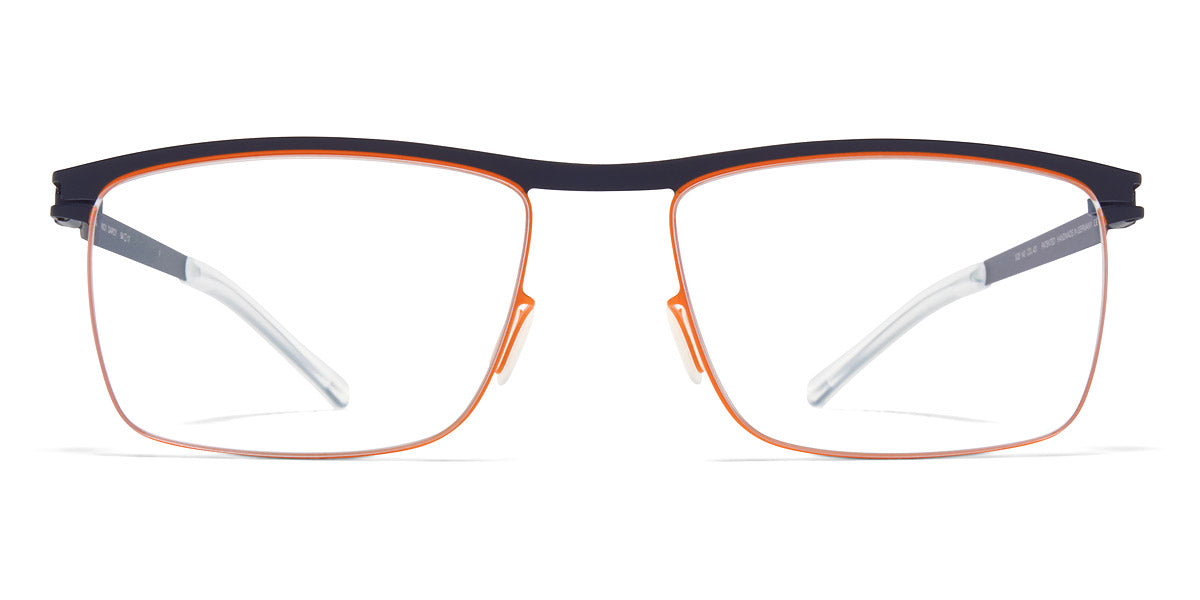 DARCY Eyeglasses by Mykita®. Color: Navy/Rusty Red, Indigo/Orange, Matte Silver/Black, Storm Grey/Black, Size: 54-17-140. MYKITA glasses feature minimalist, elegant design, lightweight construction, and sophisticated details, which makes them perfect for people with a refined taste. There are no bold logos or any other luxury codes. Instead, much attention is paid to the construction, materials and surfaces. Each frame is an unbeatable mix of new technologies and traditional craftsmanship. All glasses are meticulously made of premium-grade stainless steel, acetate or MYLON by the most experienced artisans in Berlin.