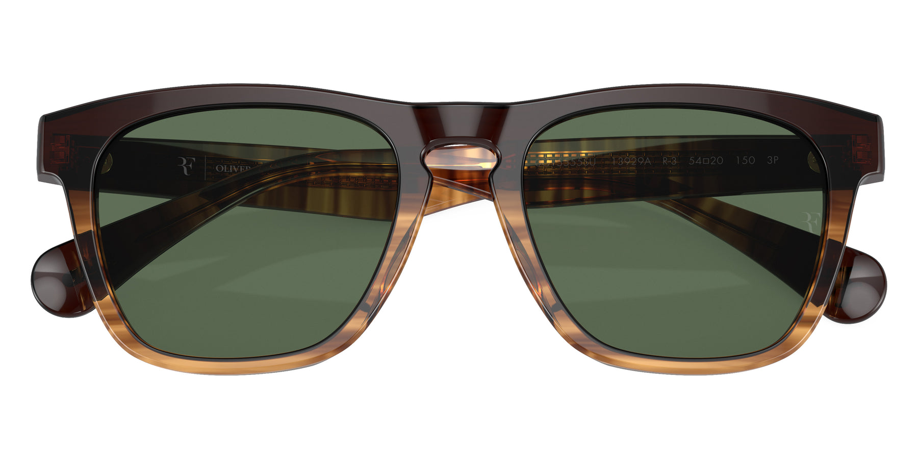 R-3 Sunglasses by Oliver Peoples. Color: Cortado/Root Beer / G-15 Polarized, Black/Crystal / Gray Polarized Mirrored, Ryegrass / Forest, Ryegrass / Forest, Blue Ash/Marine / Marine, 362 / Sierra, Workman Gray / Gray Polarized Flash Mirrored, Size: 51-20-145, 54-20-150