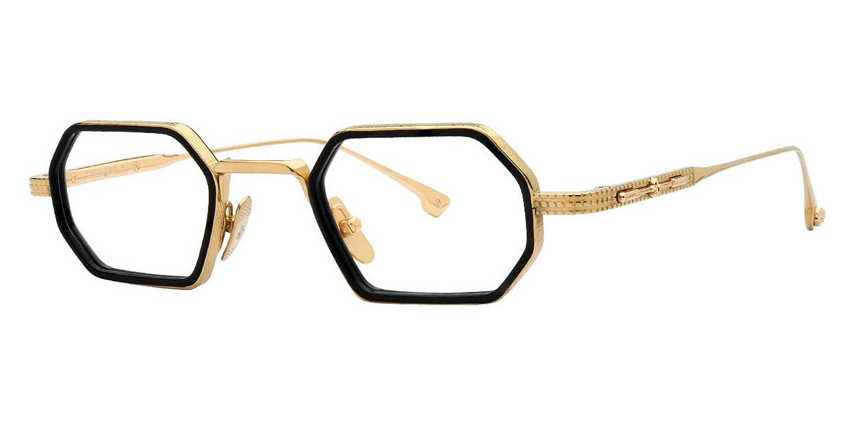 X33 Eyeglasses by Philippe V. Color: Black, Gold, Silver, Size: 45-26-145. Philippe V eyewear is the epitome of craftsmanship and attention to detail. Each pair of glasses is expertly crafted from the finest materials and finished to perfection, ensuring an unparalleled level of quality. While lightweight for optimal comfort, the frame is built to withstand the rigors of life, making it both durable and stylish. In addition to an ultra-stylish silhouette, the frame features unique hidden details that add an extra layer of elegance and sophistication.