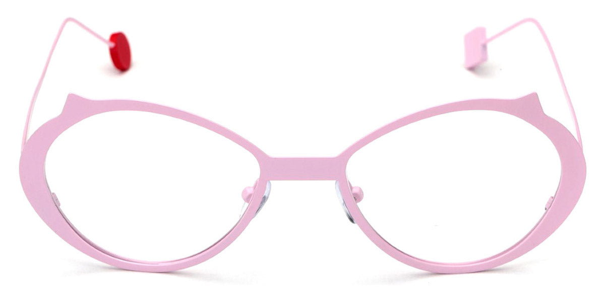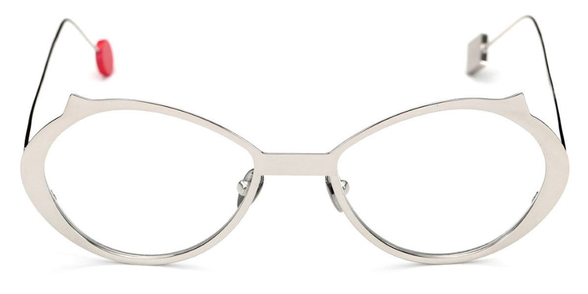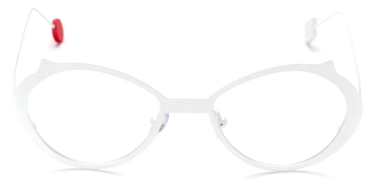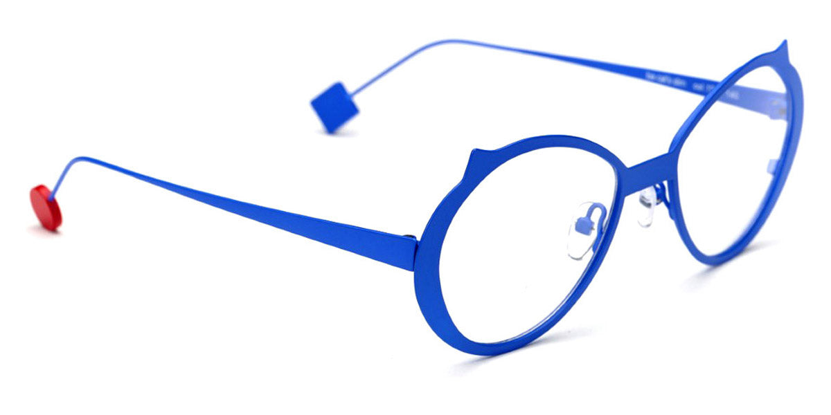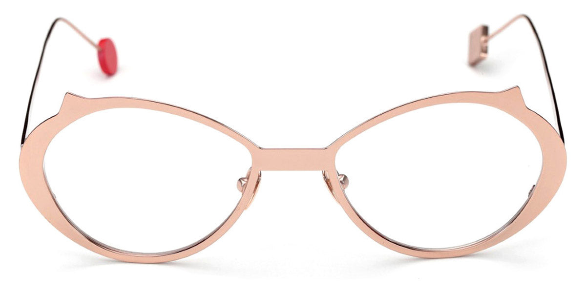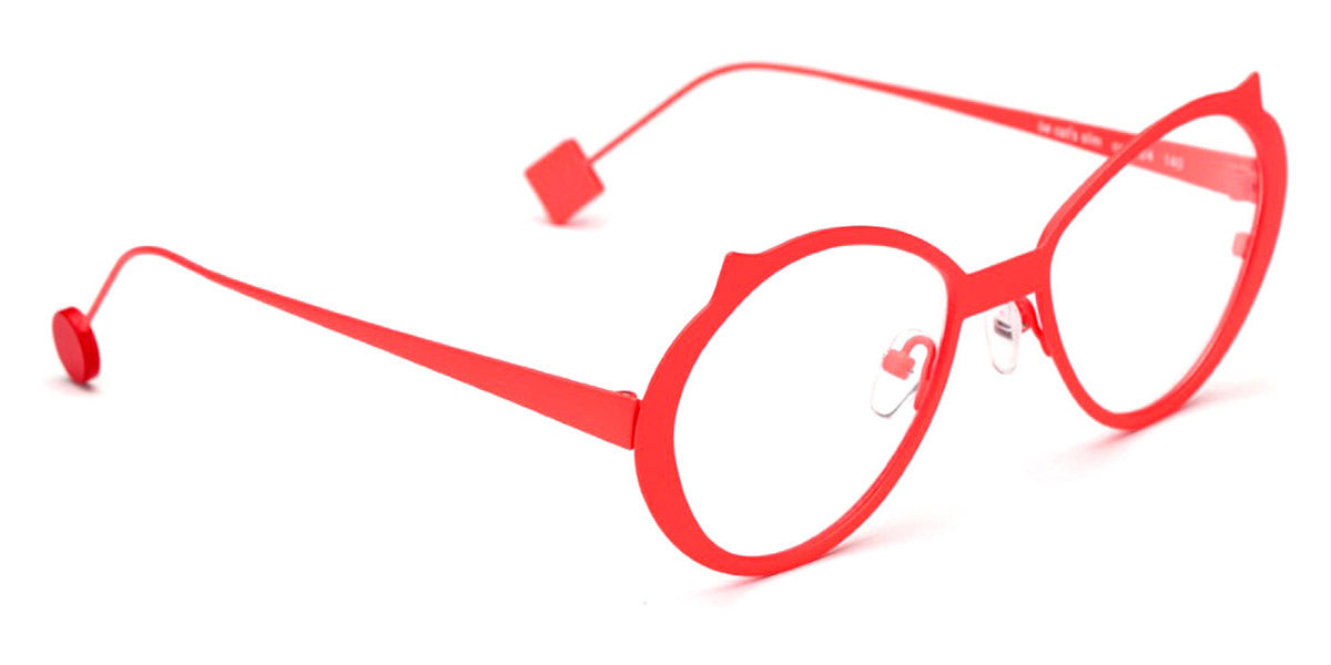 Be Cat'S Slim Eyeglasses by Sabine Be. Color: Polished Palladium, Polished Rose Gold, Polished Ruthenium, Satin Baby Pink, Satin Blue Klein, Satin Neon Orange, Satin Neon Pink, Satin Turquoise, Satin White, Size: 51-20-140. Featuring little cat ears on the top of the frame, the Be Cat's Slim frame by Sabine Be is a fun and unique way to show your playful and romantic personality. Different from traditional eyeglasses, the Be Cat's has a unique oval shape and comes equipped with scratch-resistant and impact-resistant lenses. Their wide range of color options provides a choice of elegant and classic hues alongside novelty Sabine Be palettes. Wake up the catwoman in you by wearing these ultra-feminine metal glasses with little cat ears.