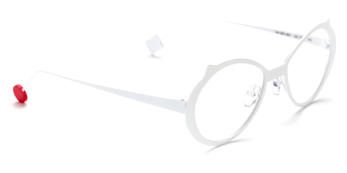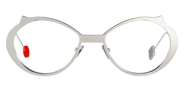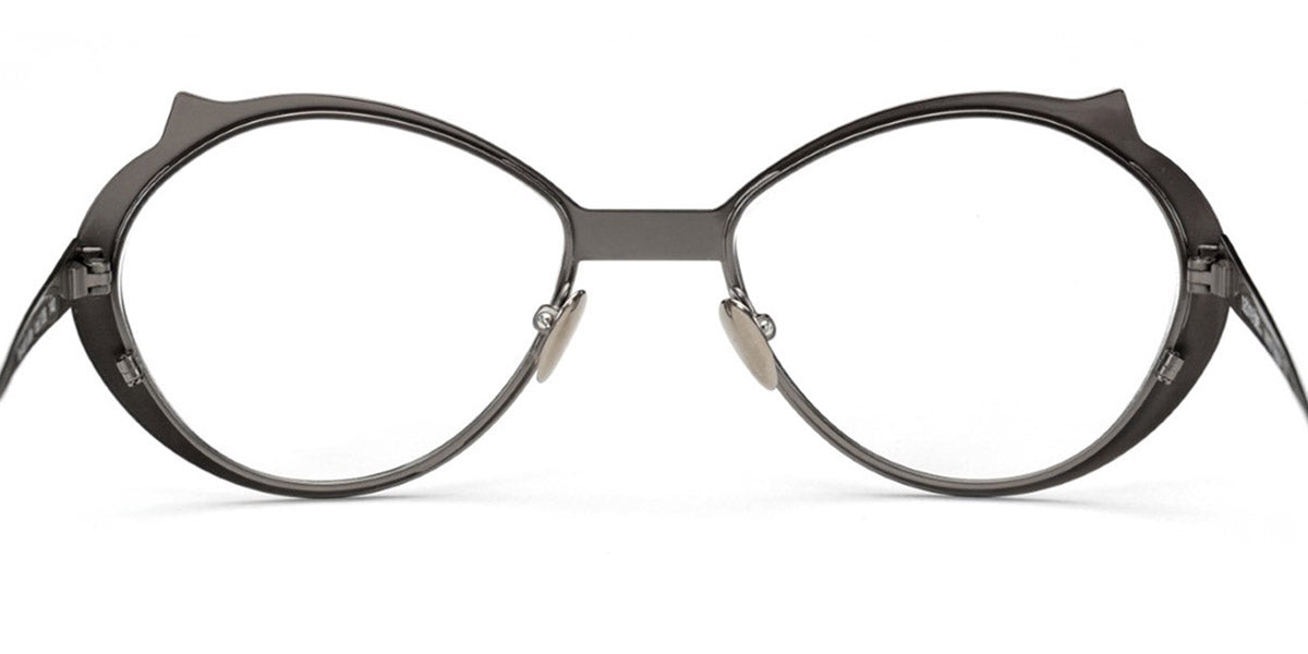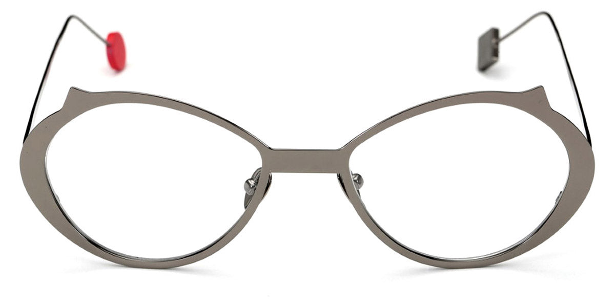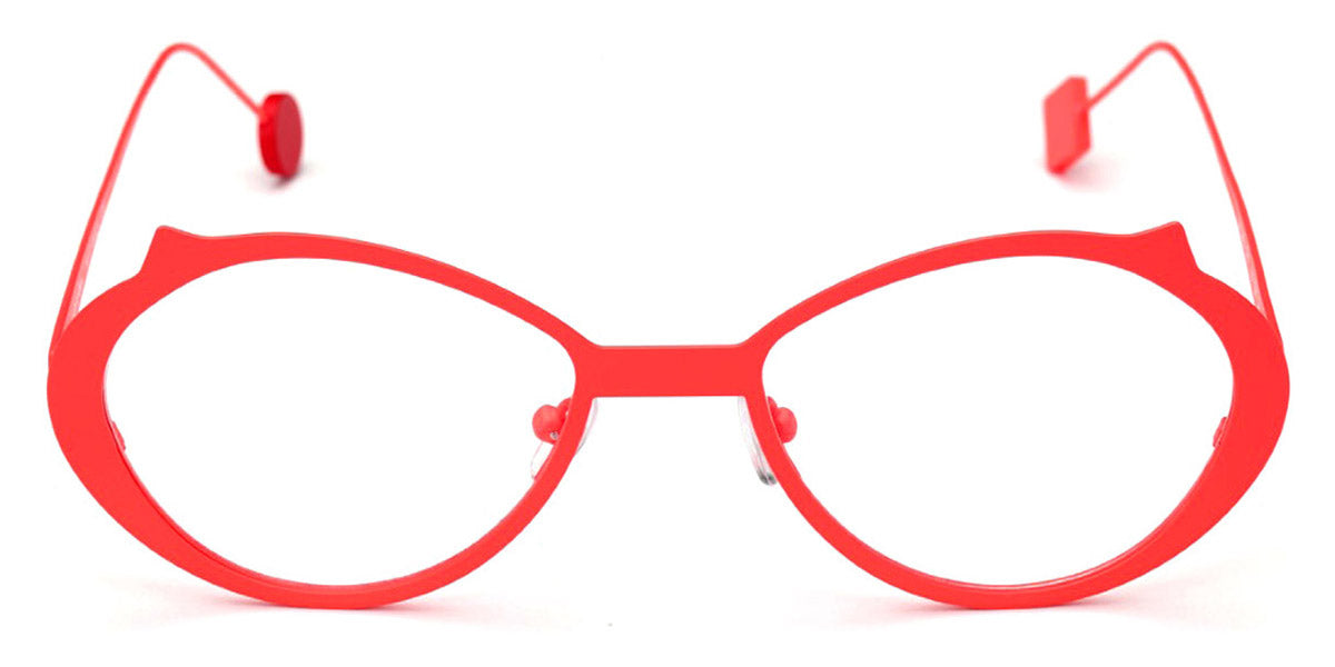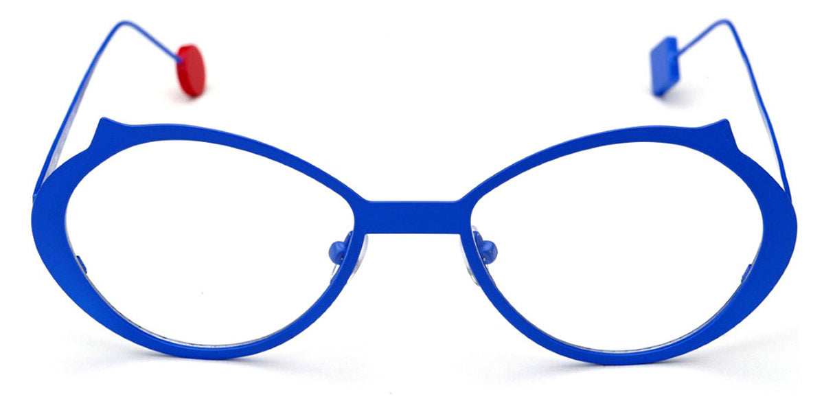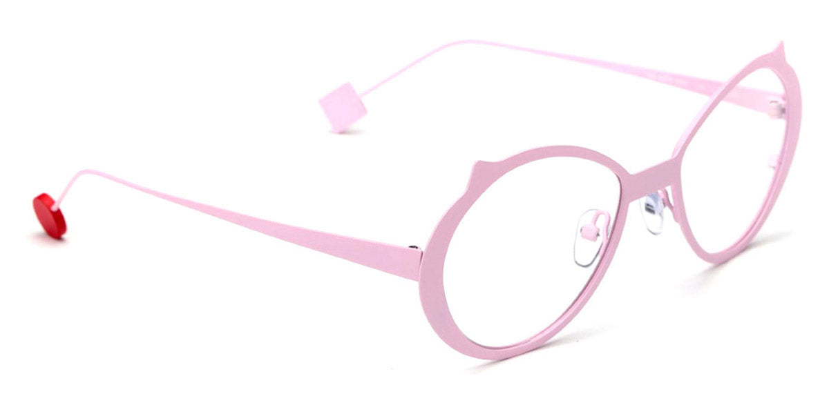 Be Cat'S Slim Eyeglasses by Sabine Be. Color: Polished Palladium, Polished Rose Gold, Polished Ruthenium, Satin Baby Pink, Satin Blue Klein, Satin Neon Orange, Satin Neon Pink, Satin Turquoise, Satin White, Size: 51-20-140. Featuring little cat ears on the top of the frame, the Be Cat's Slim frame by Sabine Be is a fun and unique way to show your playful and romantic personality. Different from traditional eyeglasses, the Be Cat's has a unique oval shape and comes equipped with scratch-resistant and impact-resistant lenses. Their wide range of color options provides a choice of elegant and classic hues alongside novelty Sabine Be palettes. Wake up the catwoman in you by wearing these ultra-feminine metal glasses with little cat ears.