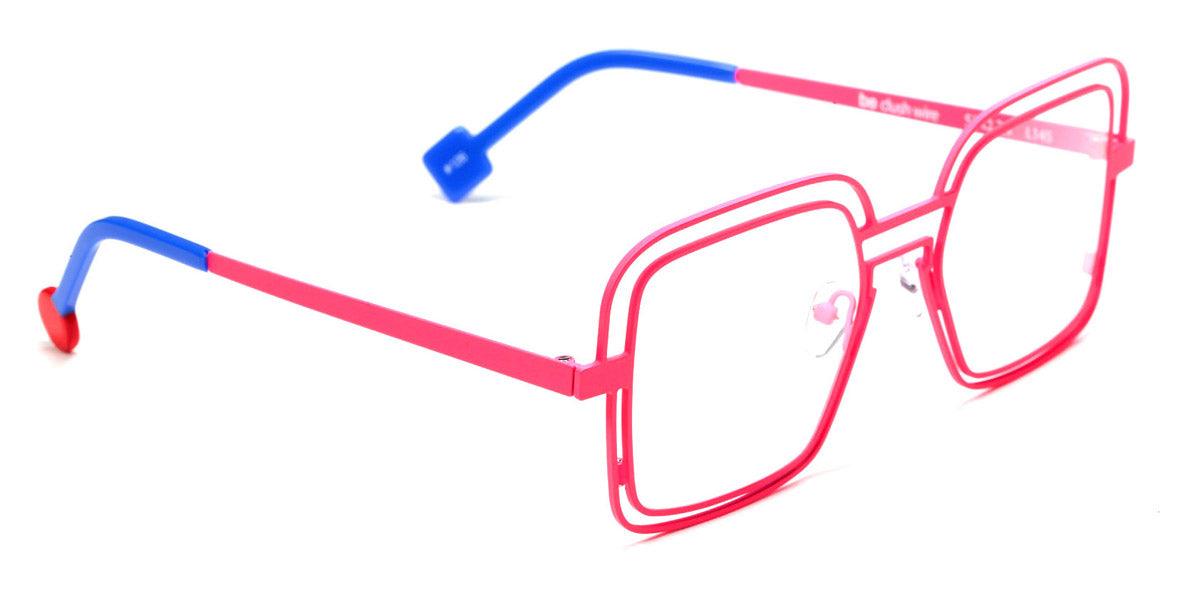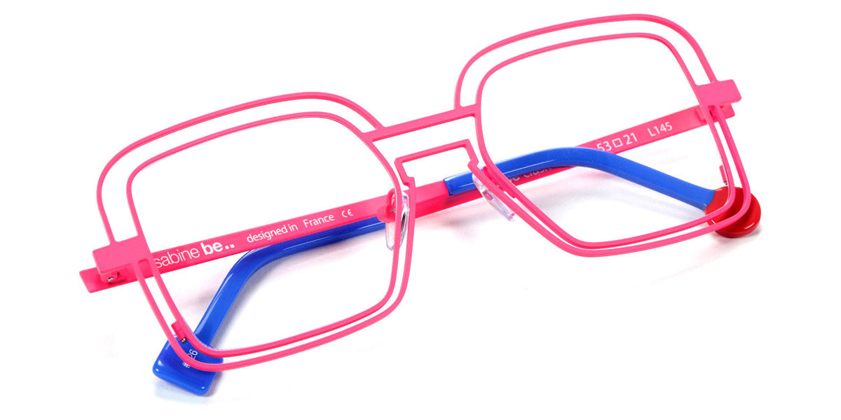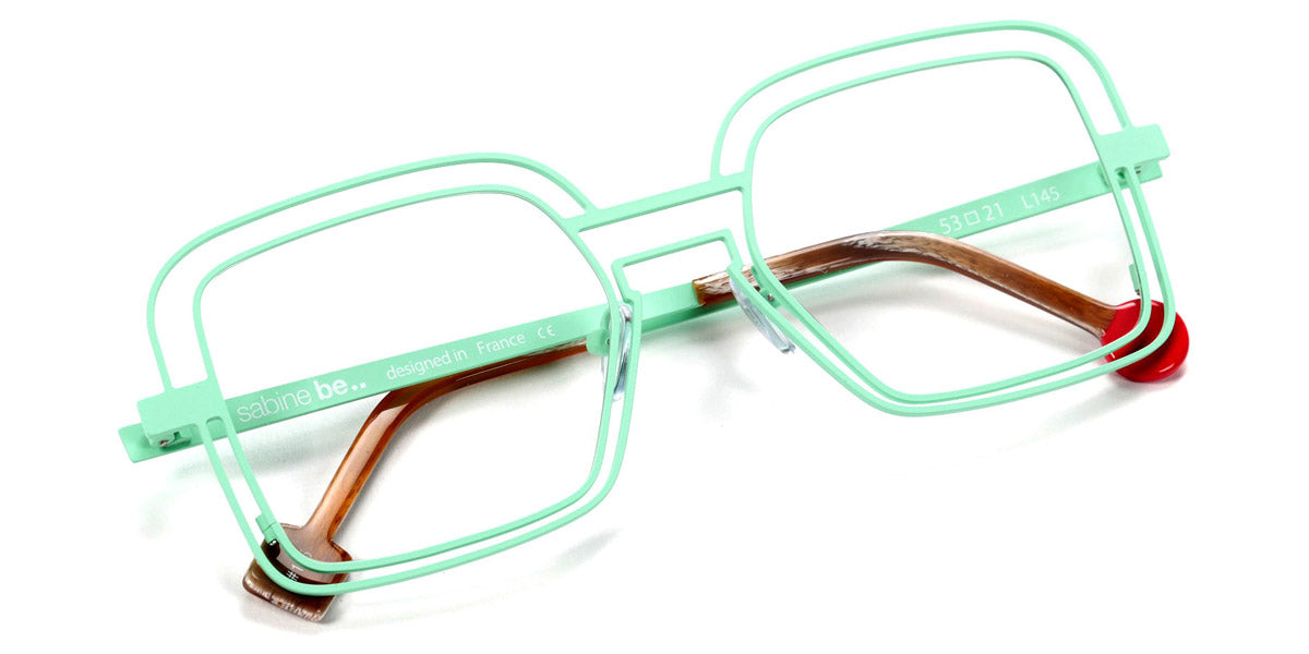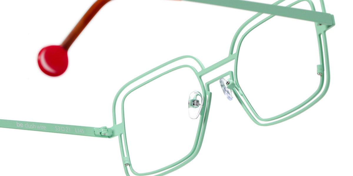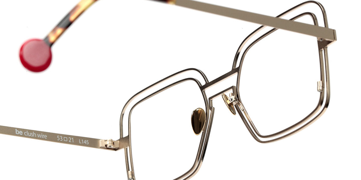 Be Clush Wire Eyeglasses by Sabine Be. Color: Satin Turquoise, Satin Neon Pink, Satin Baby Pink, Polished Pale Gold, Polished Rose Gold, Satin Khaki, Shiny Black, Camel Brillant, Size: 53-21-145.