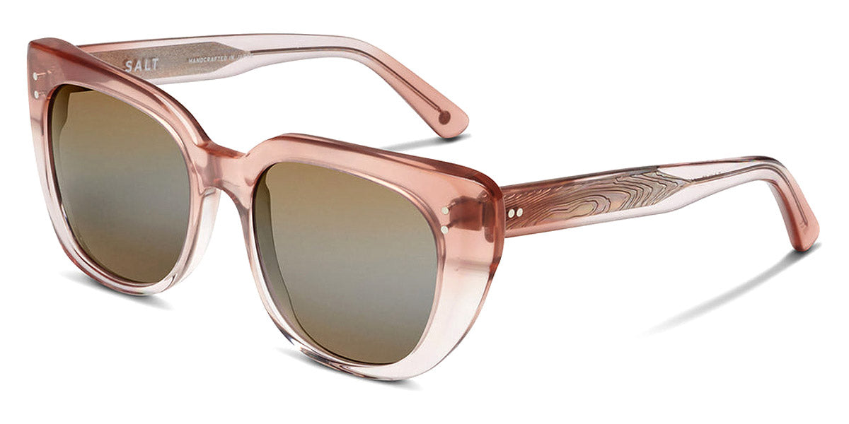 SIERRA Sunglasses by SALT. Color: Amethyst/Polarized CR-39 Lovers Soul Lens, Antique Leaves/Polarized Glass G-15 Lens, Black/Polarized CR-39 Brown Gradient Lens, Rose Fog/Polarized CR-39 Lovers Soul Lens, Size: 54-19-145. Inspired by Nature’s effortless beauty, SALT. glasses are head-turning pieces-of-art, refined and elegant. Manufactured in Japan from the best-in-class materials to the highest standards, they are guaranteed to last for generations. Designed by opticians, the glasses are paired with the premium-grade SALT.’S proprietary lens that is the clearest lens in the industry. The retro-inspired shape goes with everything and will make any outfit—yes, even your workout clothing—instantly chic. Utilizing modern technologies and proven materials, this iconic SALT. frame offers the perfect blend of style, functionality, and optical performance.