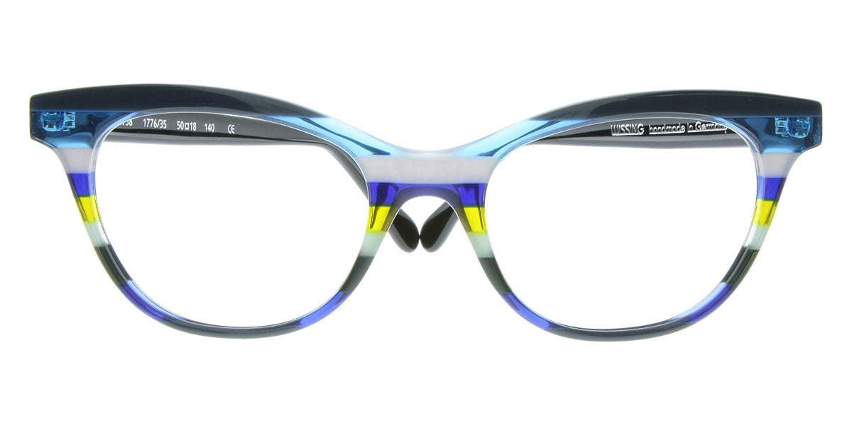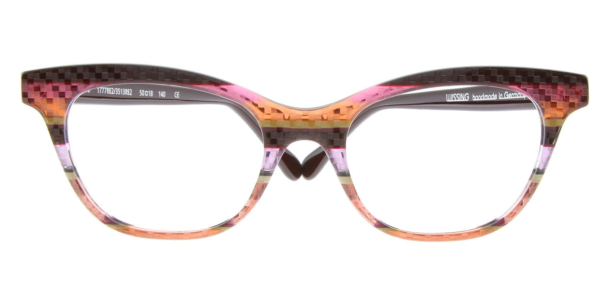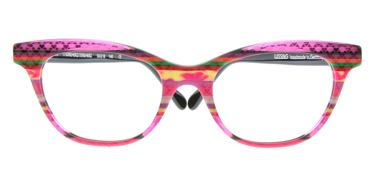 2958 Eyeglasses by Wissing . Boldness and exclusiveness are those distinguishing features that have always characterized Wissing. The reputed German brand creates one-off, unmistakable pieces of art, handcrafted from multi-layer acetate, which means endless possibilities for eyewear design. Each Wissing frame features a distinctive shape and comes offered in bright, eye-catching color combinations.