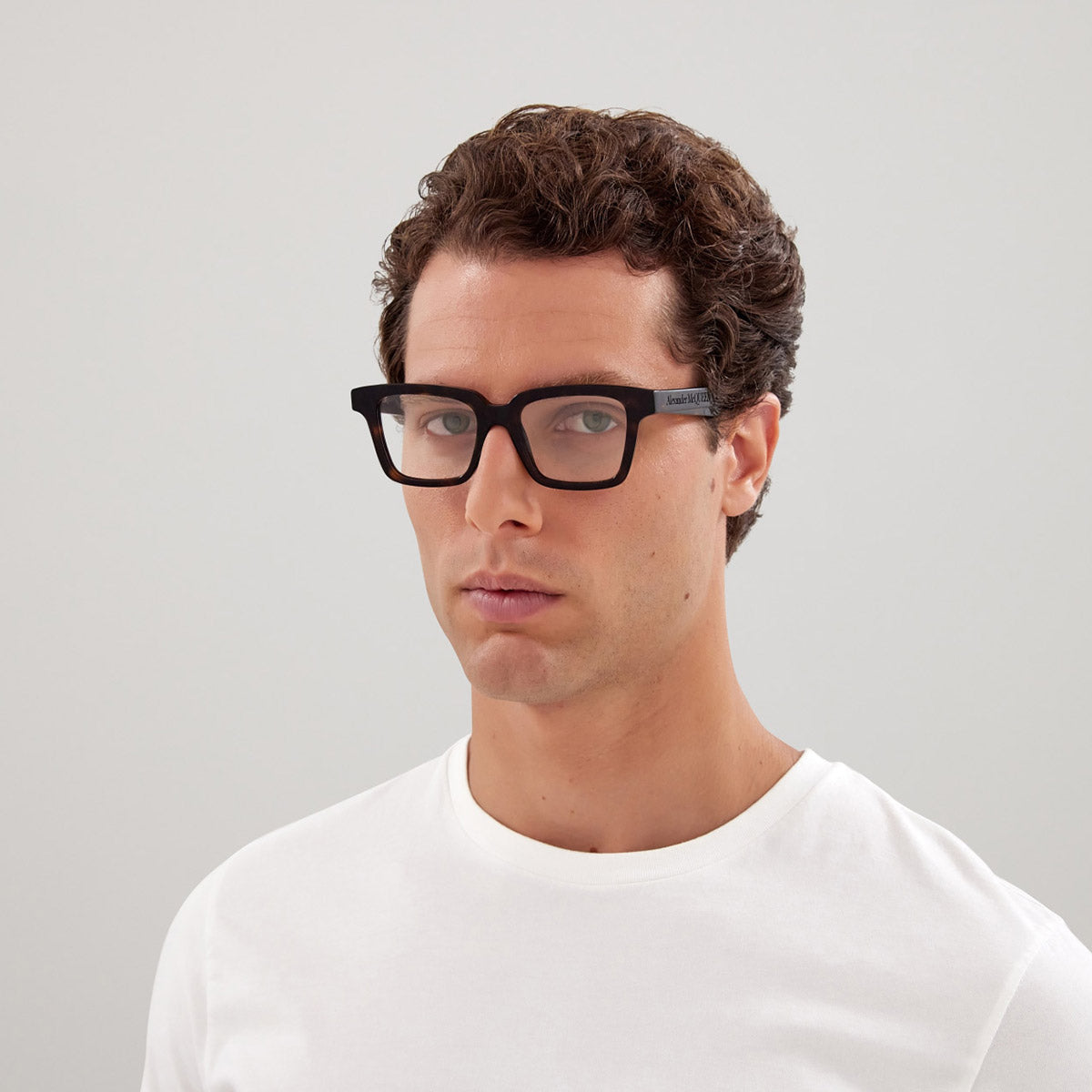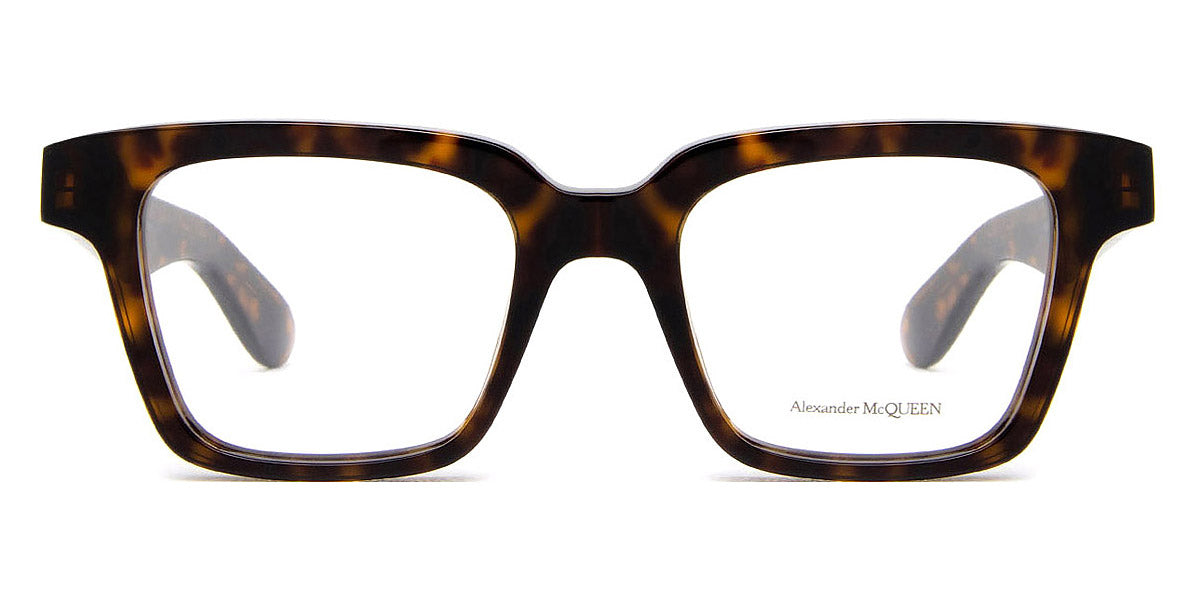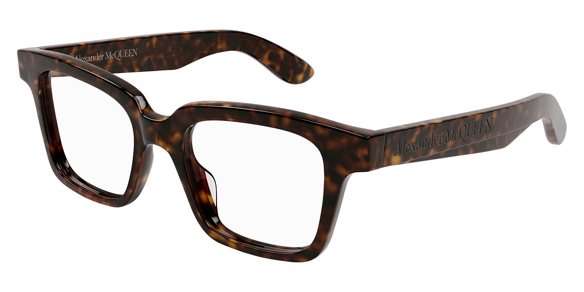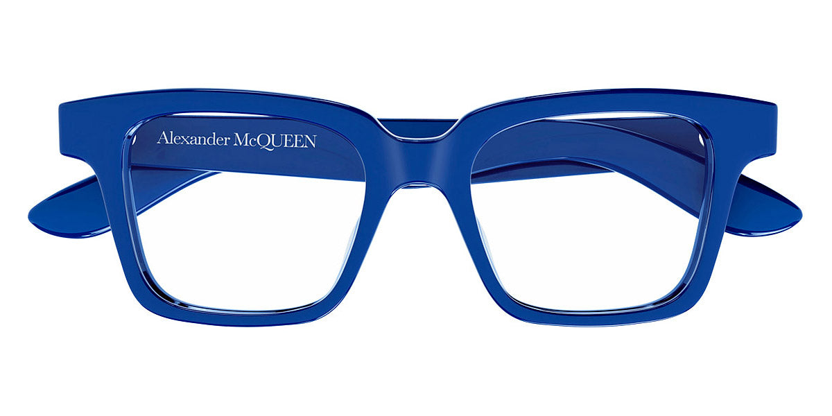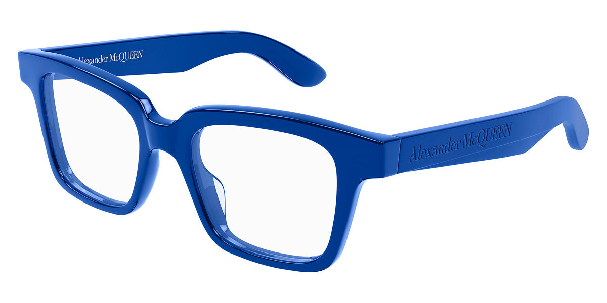 AM0385O Eyeglasses by Alexander McQueen. Color: Black, Havana, Blue, Size: 49-18-145. The Alexander McQueen eyewear pieces are must haves for anyone who wants to stand out from the crowd, yet without being exorbitant and retaining a certain air of refinement. Each pair of sunglasses and optical frames is embellished with luxury details, such as skulls, studs and bugs that make the difference on every outfit, succeeding even to upgrade the simplest looks. Masterfully crafted in Italy from the highest grade materials, the McQueen’s glasses meet the needs of the most demandable clients. Lady Gaga, Michelle Obama and Cate Blanchett are among the brand’s most loyal fans. All Alexander McQueen Eyewear is 100% certified UV protective (UVA and UVB rays).