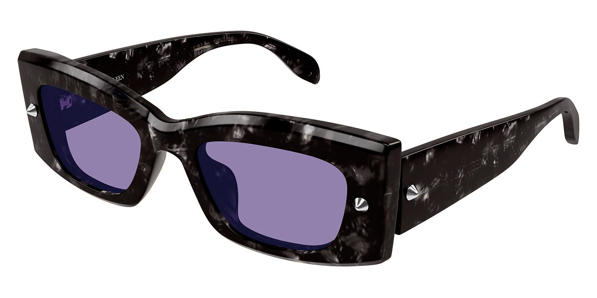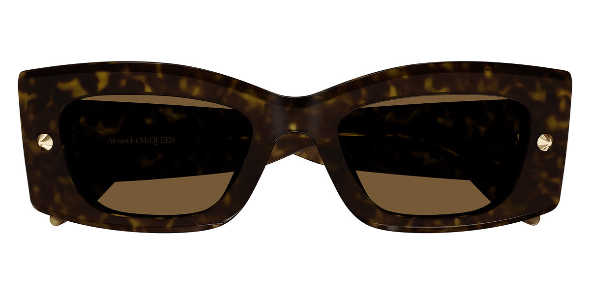 AM0426S Sunglasses by Alexander McQueen. Color: Black / Gray Lenses, Havana / Brown Lenses, Havana / Violet Lenses, Size: 51-20-140. The Alexander McQueen eyewear pieces are must haves for anyone who wants to stand out from the crowd, yet without being exorbitant and retaining a certain air of refinement. Each pair of sunglasses and optical frames is embellished with luxury details, such as skulls, studs and bugs that make the difference on every outfit, succeeding even to upgrade the simplest looks. Masterfully crafted in Italy from the highest grade materials, the McQueen’s glasses meet the needs of the most demandable clients. Lady Gaga, Michelle Obama and Cate Blanchett are among the brand’s most loyal fans. All Alexander McQueen Eyewear is 100% certified UV protective (UVA and UVB rays).