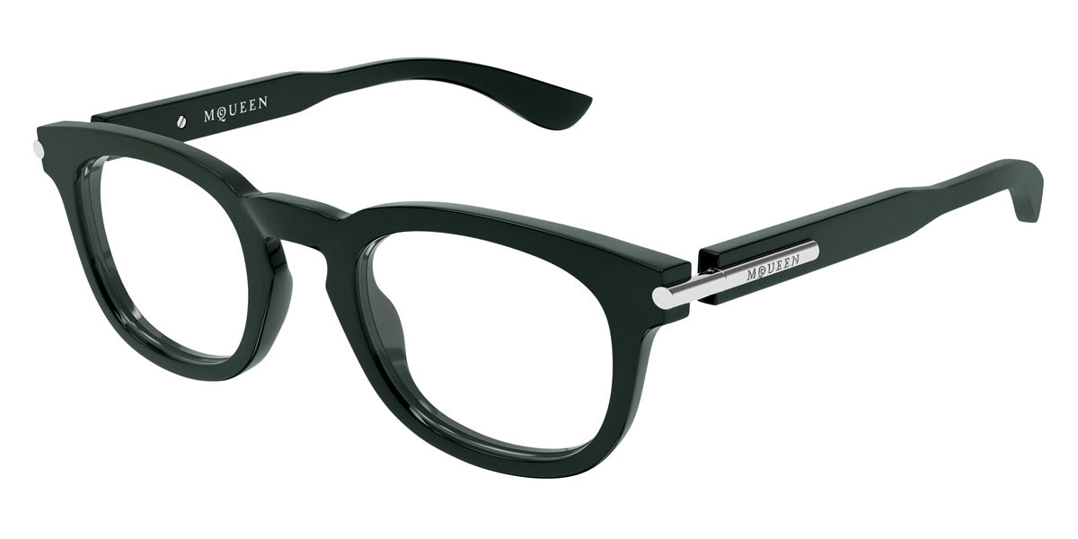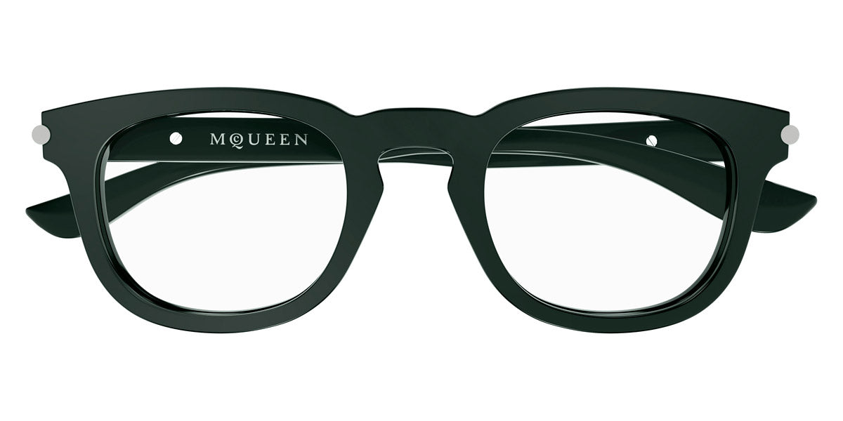 AM0498O Eyeglasses by Alexander McQueen. Color: Black, Green, Size: 48-23-145. The Alexander McQueen eyewear pieces are must haves for anyone who wants to stand out from the crowd, yet without being exorbitant and retaining a certain air of refinement. Each pair of sunglasses and optical frames is embellished with luxury details, such as skulls, studs and bugs that make the difference on every outfit, succeeding even to upgrade the simplest looks. Masterfully crafted in Italy from the highest grade materials, the McQueen’s glasses meet the needs of the most demandable clients. Lady Gaga, Michelle Obama and Cate Blanchett are among the brand’s most loyal fans. All Alexander McQueen Eyewear is 100% certified UV protective (UVA and UVB rays).