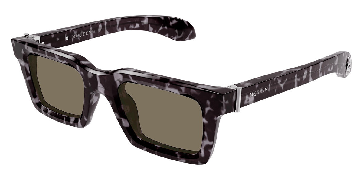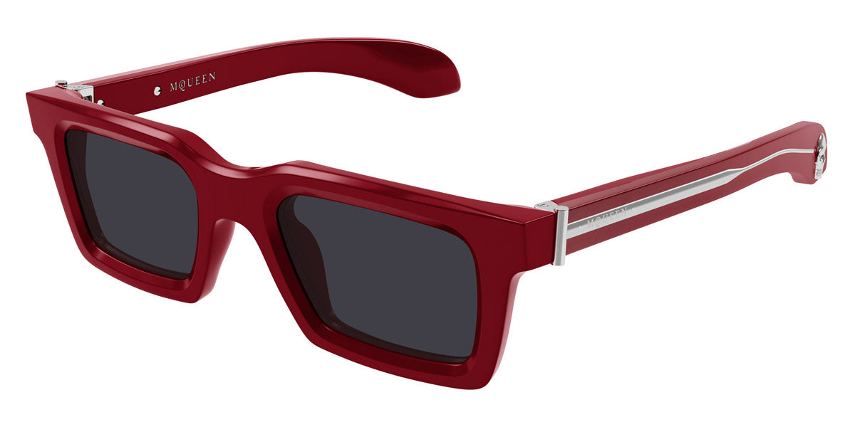 AM0506S Sunglasses by Alexander McQueen. Color: Black, Havana, Red, Size: 50-22-150. The Alexander McQueen eyewear pieces are must haves for anyone who wants to stand out from the crowd, yet without being exorbitant and retaining a certain air of refinement. Each pair of sunglasses and optical frames is embellished with luxury details, such as skulls, studs and bugs that make the difference on every outfit, succeeding even to upgrade the simplest looks. Masterfully crafted in Italy from the highest grade materials, the McQueen’s glasses meet the needs of the most demandable clients. Lady Gaga, Michelle Obama and Cate Blanchett are among the brand’s most loyal fans. All Alexander McQueen Eyewear is 100% certified UV protective (UVA and UVB rays).