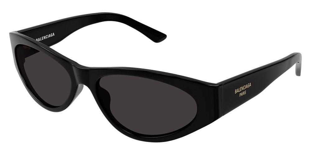 BB0367S Sunglasses by Balenciaga. Color: Black / Gray, Violet / Gray, Size: 55-20-145. The Balenciaga Eyewear collections consist of sunglasses and eyeglasses frames that combine a simple new style with the fashion house's desire to be inspired by technological innovation in its shapes and silhouettes. They embody revolutionary trends and fashionable realism. All models of glasses are marked with the brand's corporate logo, interpreted in their own way in different styles. The black double monogram "B" is set on transparent nose pads, creating a floating and weightless effect. The logo of the brand's sunglasses is applied to the mirror coating, which in different variations is always presented on the left temple. Extraordinary designs and unconventional materials mixed with more classic ones make Balenciaga eyewear unique and easily recognizable.