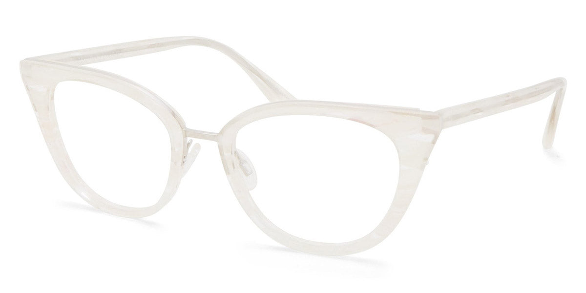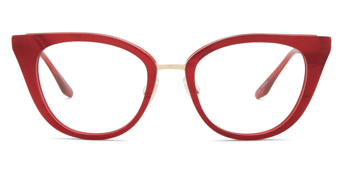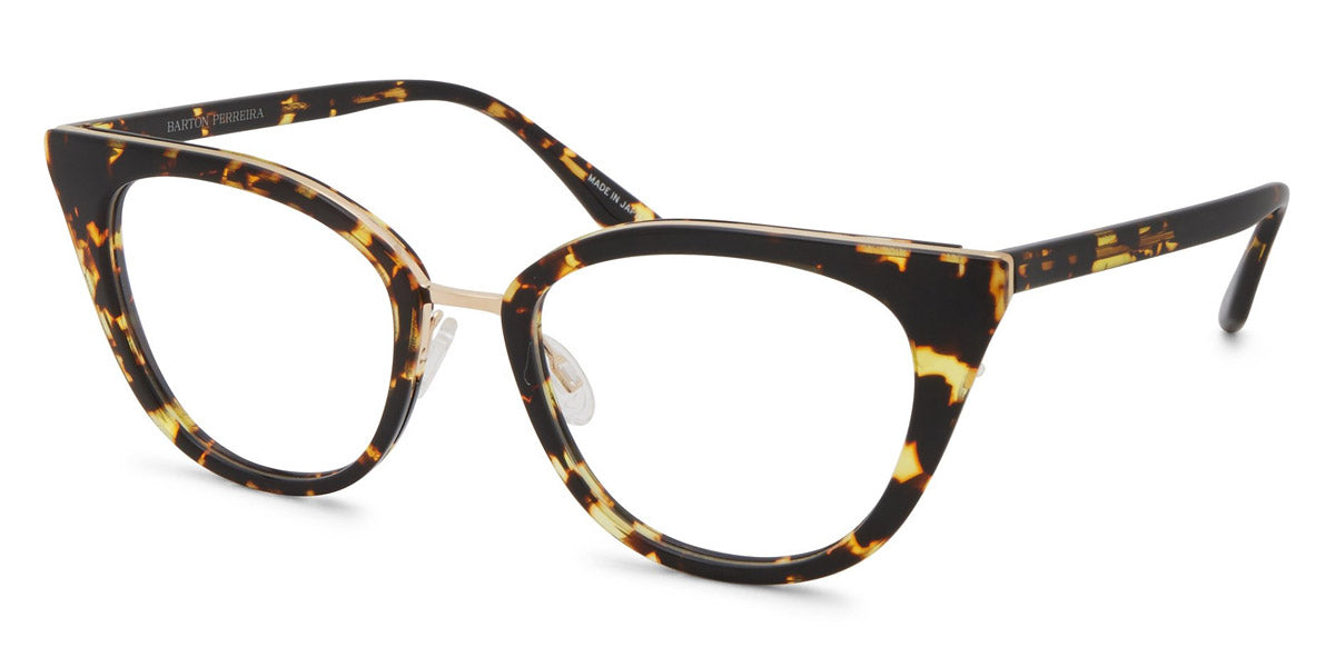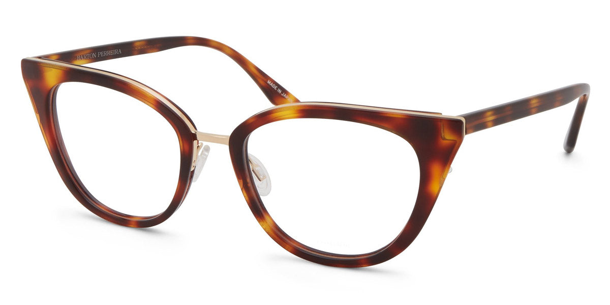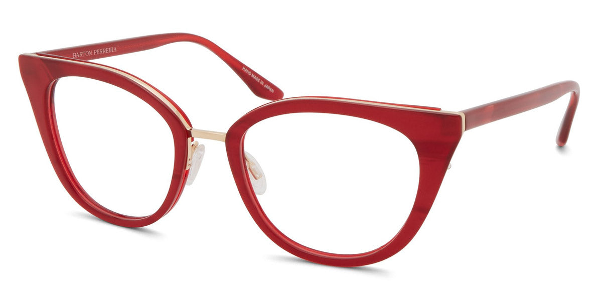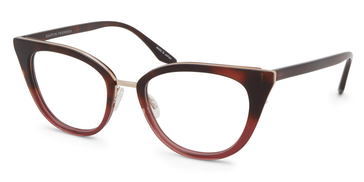 Dorian Eyeglasses by Barton Perreira. Shape: Cat-Eye, Material: Titanium and Acetate, Color: Crushed Heart / Gold, Crystal Ivory Pearl / Silver, Heroine Chic / Gold, Spanish Cedar / Gold, Tea Rose Gradient / Rose Gold, Size: 49-18-145. Meticulously crafted by hand in Japan, a single pair of Barton Perreira frames is a real work-of-art with exquisite details and stunning silhouettes. Every facet and every angle of Barton Perreira glasses is brought to life with virtuosity and precision. Made from the premium-grade Japanese acetate and titanium, they fit like a tailored suit. In addition, the frames are wired with an adjustable foundation to align perfectly with the wearer’s face, while maintaining its shape.